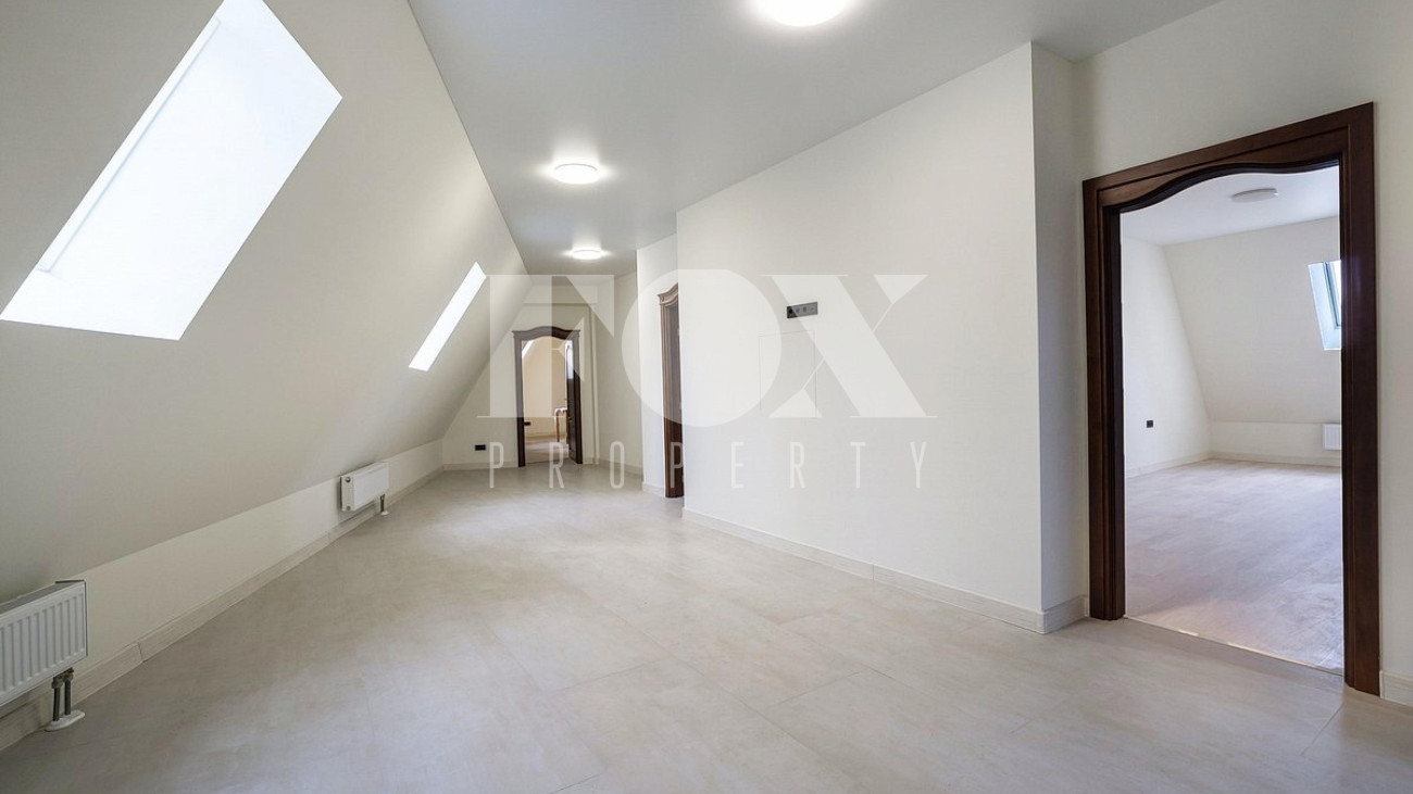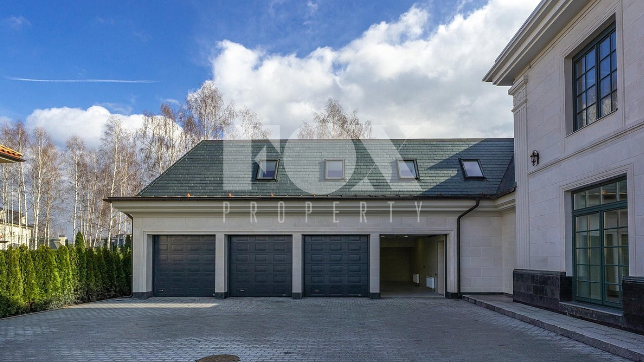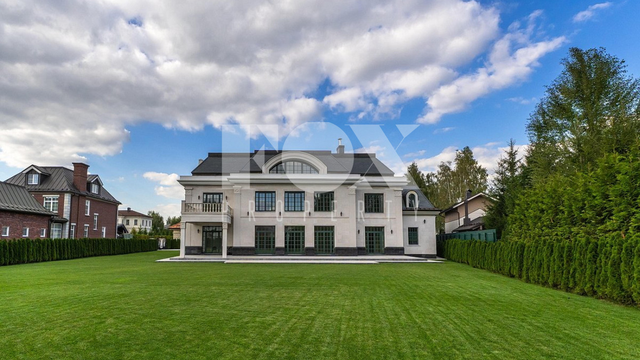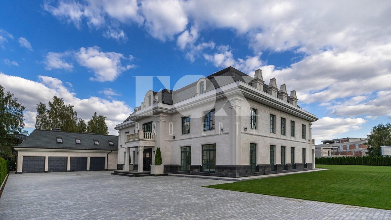 Дом площадью 1250 кв.м в стиле французского шато под «чистовую» отделку, частично под ключ. Установлены система «умный дом", кондиционеры Daikin, вентиляция Salda. На полу уложен мрамор.