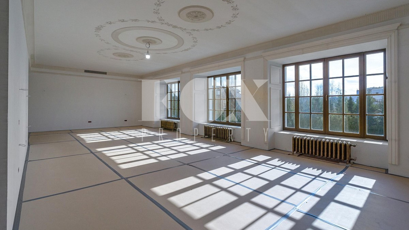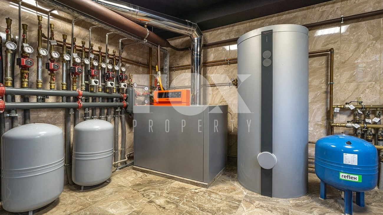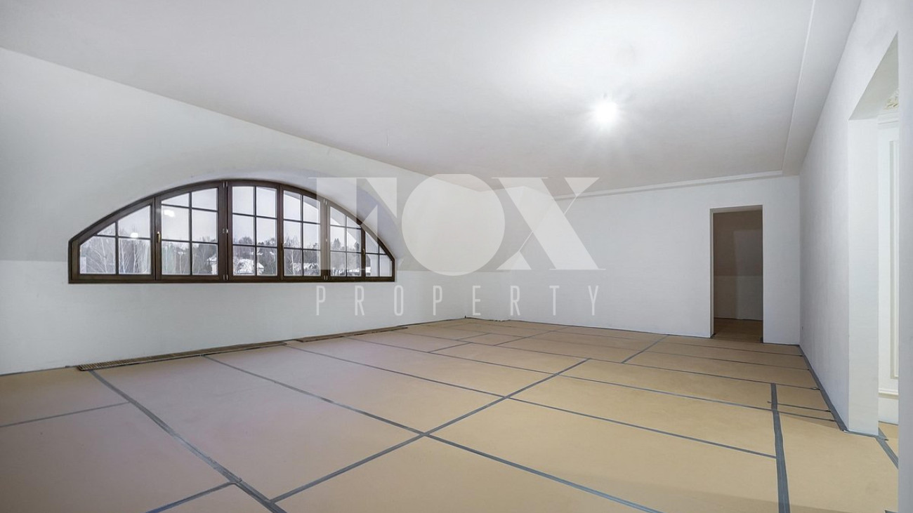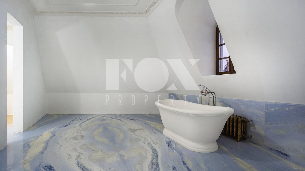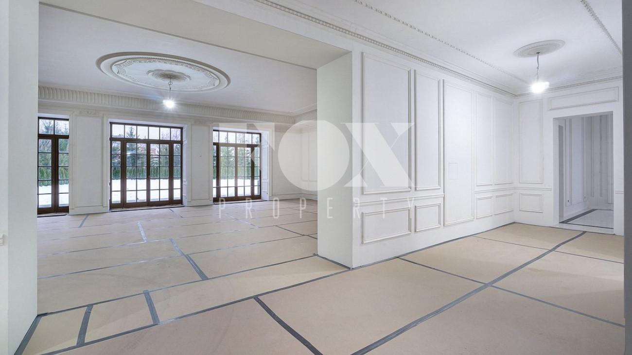 Дом площадью 1250 кв.м в стиле французского шато под «чистовую» отделку, частично под ключ. Установлены система «умный дом", кондиционеры Daikin, вентиляция Salda. На полу уложен мрамор.