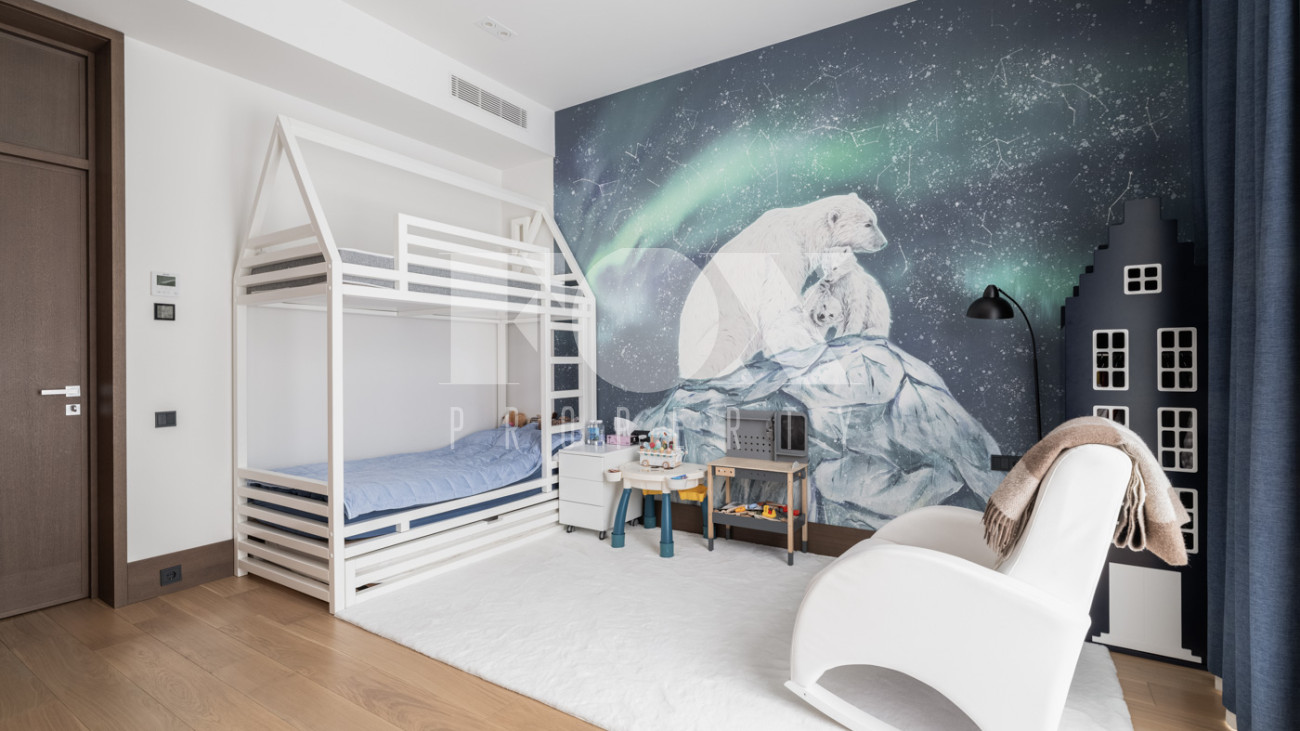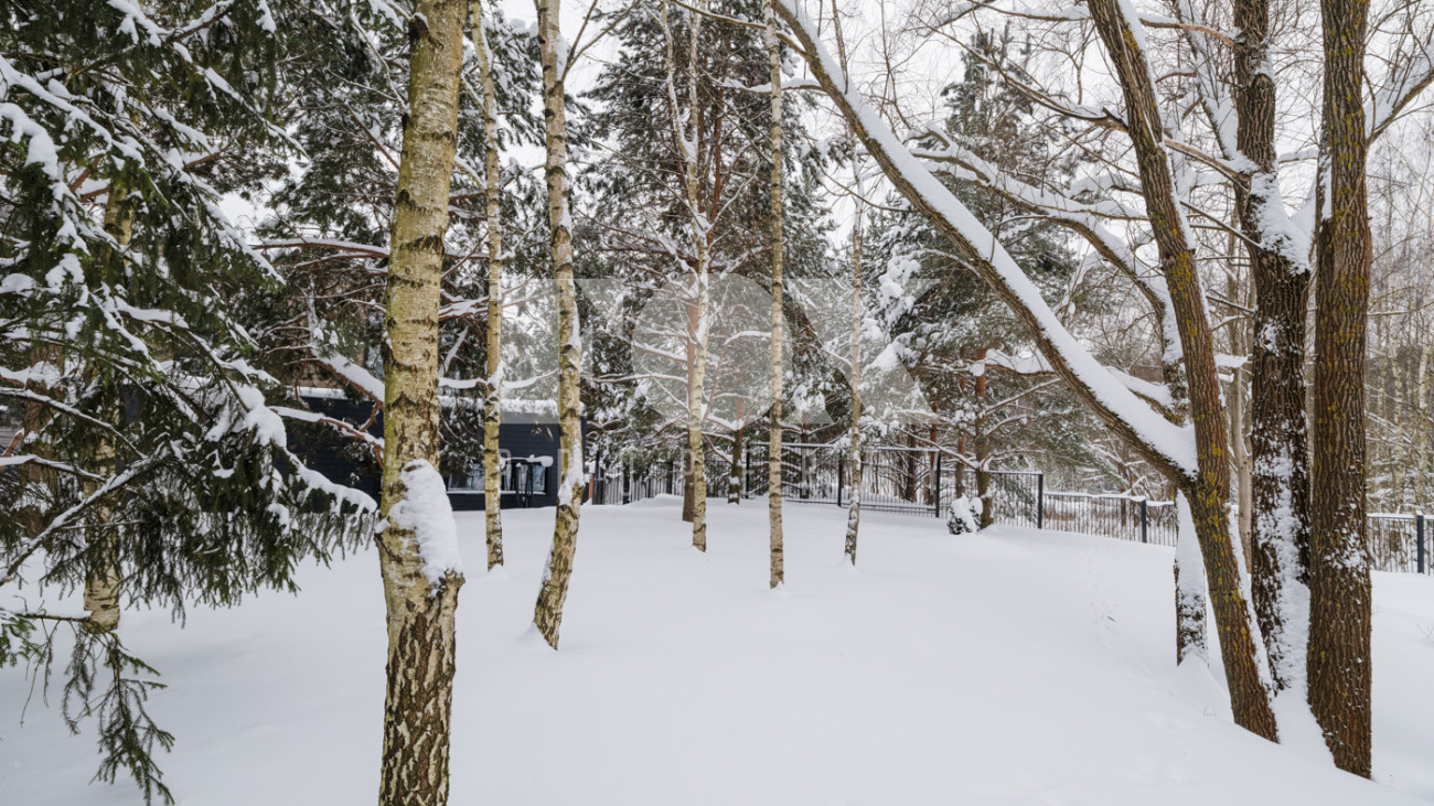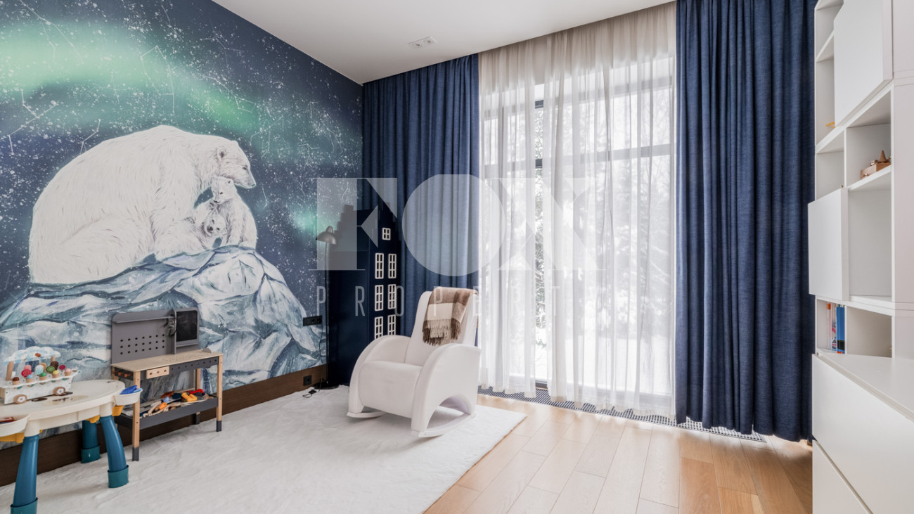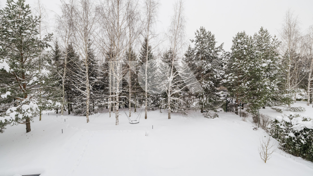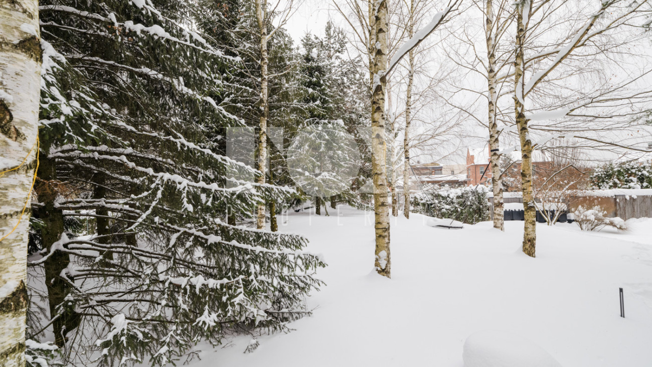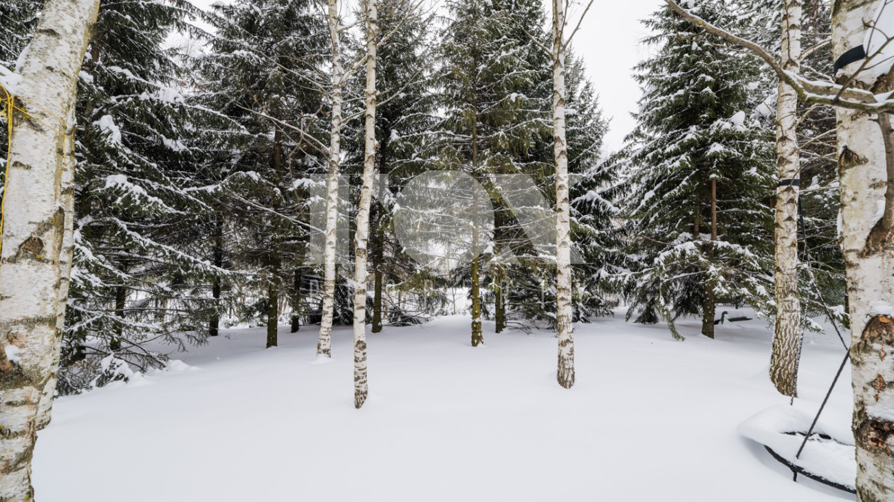Участок с ландшафтным дизайном и хвойными деревьями. На участке расположен игровой домик для детей, небольшая теплица, хозблок с квартирой для персонала (одна спальня). Живописные виды на окрестности - поле и лес. С территории участка есть выход в парковую зону около Москвы-реки.
