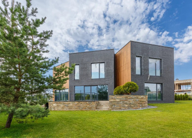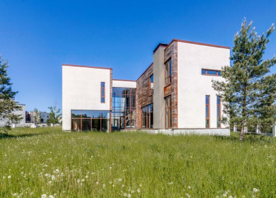 Новый дом 1500 кв.м расположен в камерном коттеджном поселке Берёзки River Village в самом центре Рублевки. Участок площадью 29 соток с уложенным газоном и высаженными деревьями примыкает к прогулочной зоне реки Медвенка. Шикарные хозяйские апартаменты 190 кв.м, бассейн, сауна, кинотеатр, тренажерный зал, бильярдная, второй свет.
