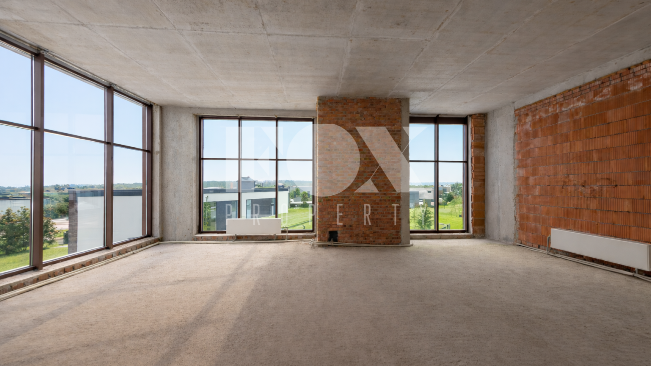 Отсутствие отделки предоставляет будущим владельцам полную свободу для воплощения авторского дизайн-проекта с возможностью выбора любого стиля, финишных покрытий, мебели и техники по своему вкусу. Пространство позволяет разместить здесь просторную гостиную, кухню-столовую с удобным островом и пять уютных спален. Для автомобилей предусмотрен встроенный гараж.