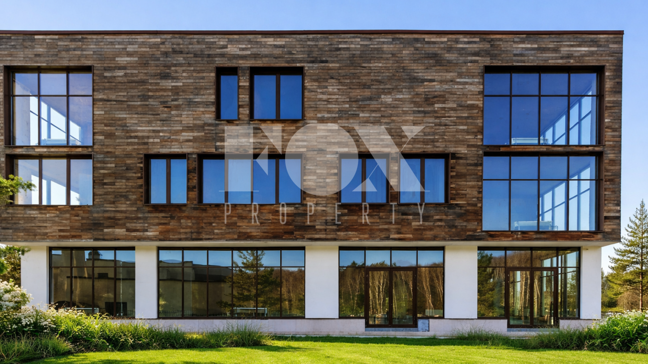 Загородный особняк площадью 1019 м² расположен на полевом участке 23 сотки.