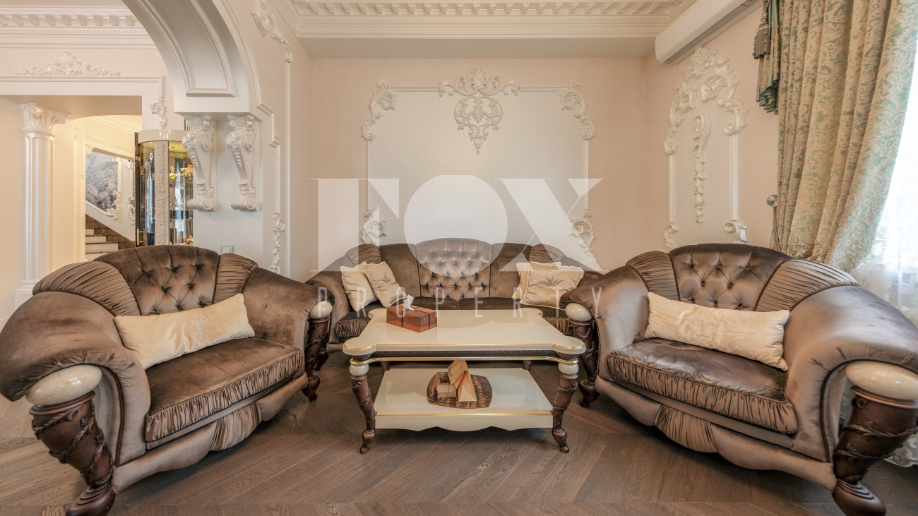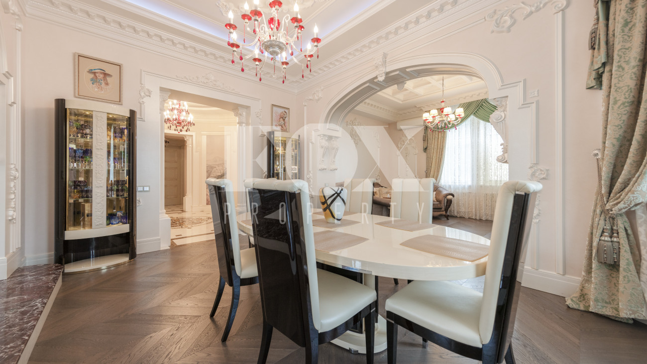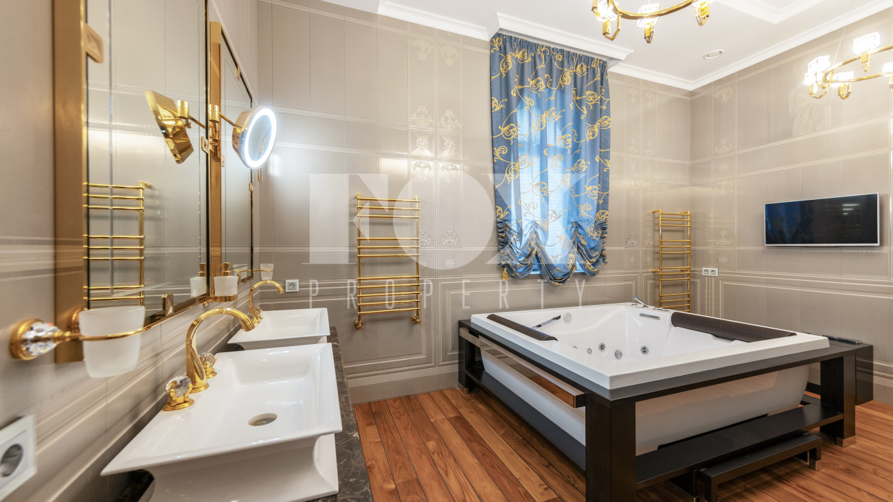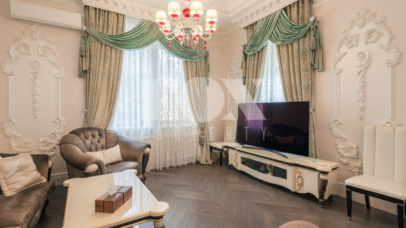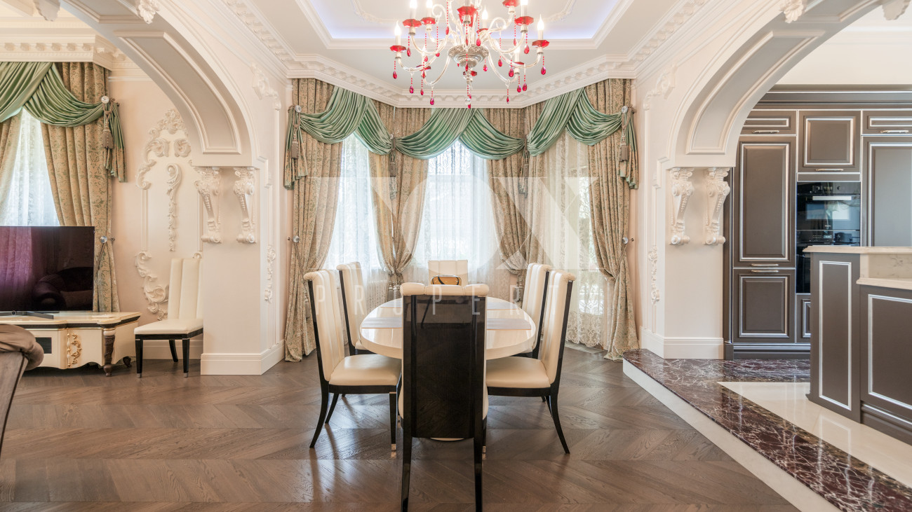 В доме выполнен высококачественный ремонт премиальными материалами в классическом стиле.