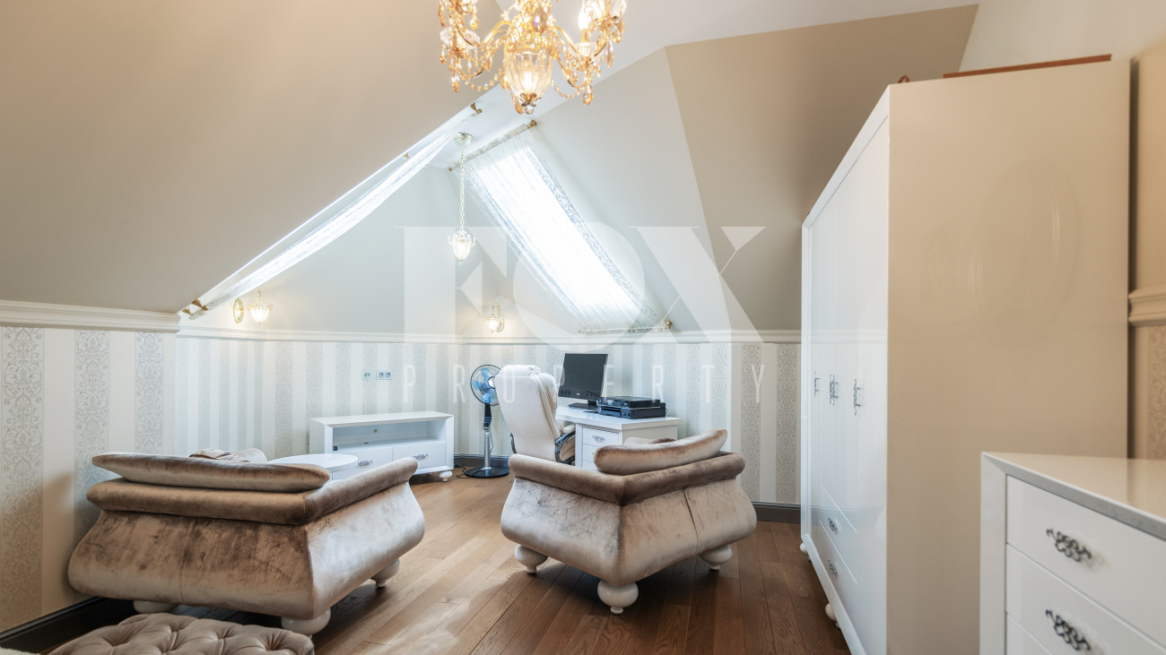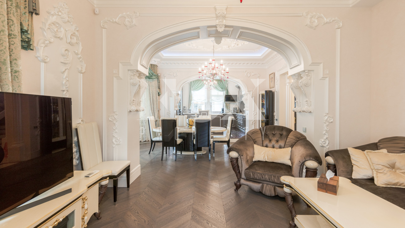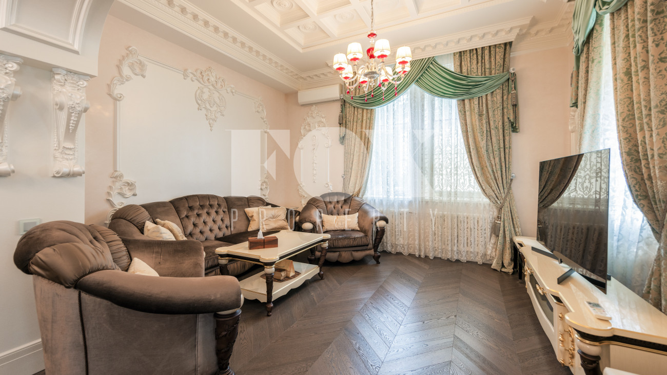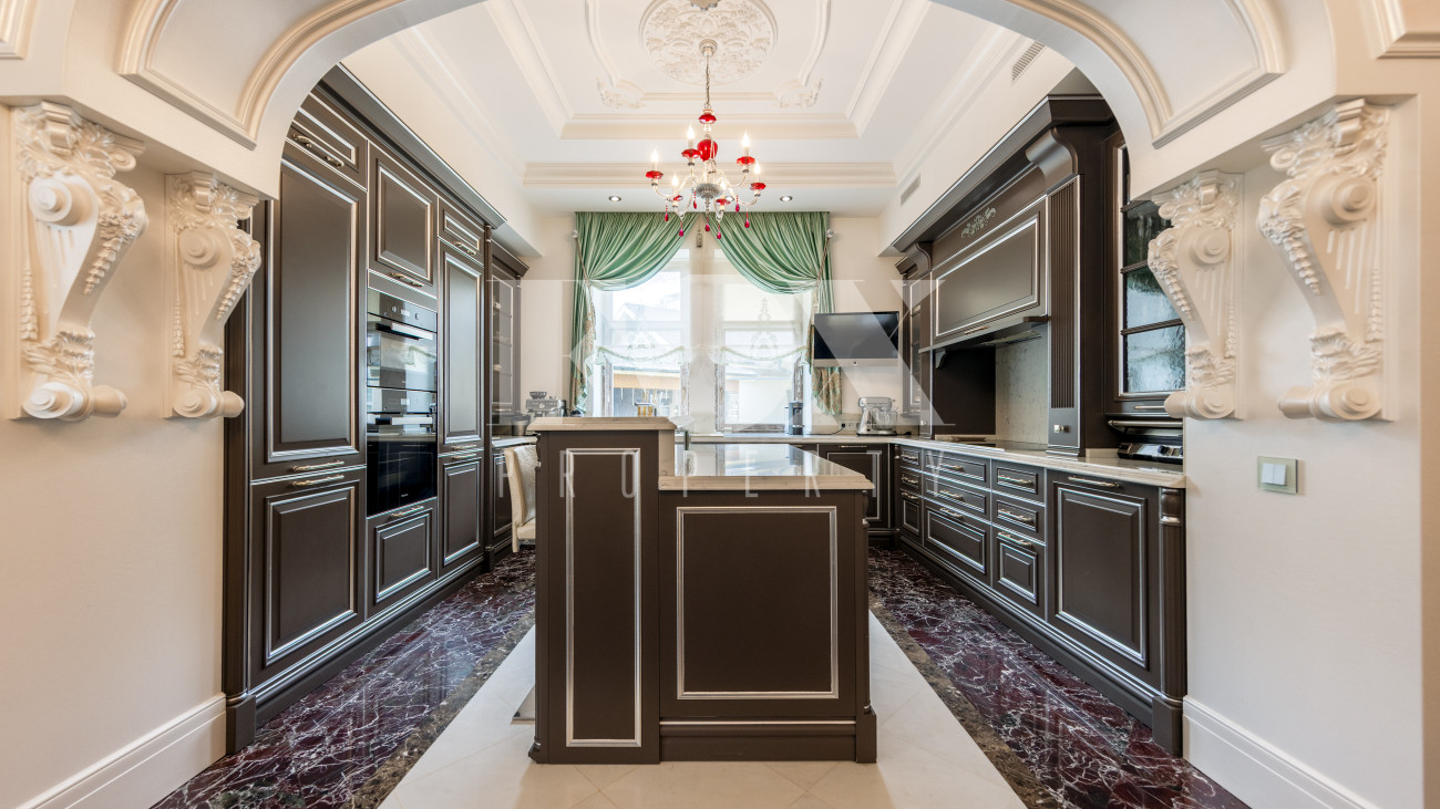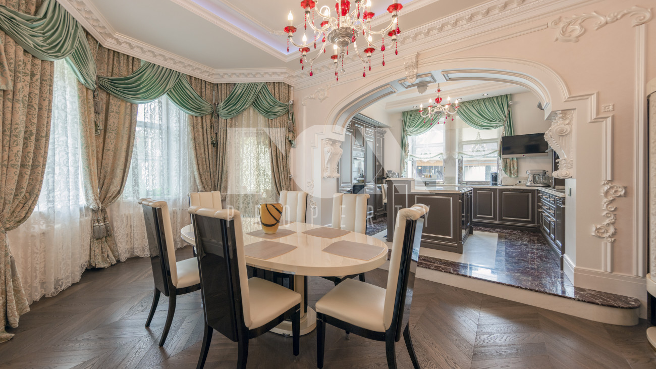 В доме выполнен высококачественный ремонт премиальными материалами в классическом стиле.