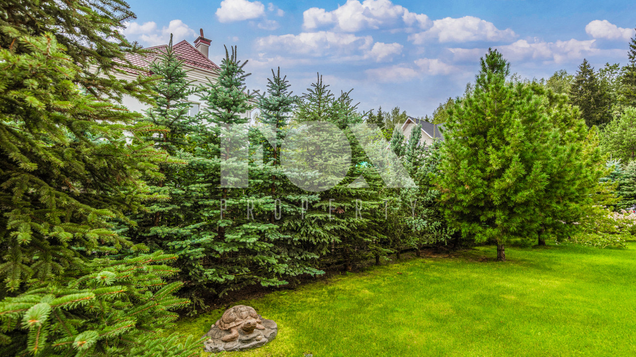 На просторном приватном участке выполнен ландшафтный дизайн, установлены системы дренажа и автополива.