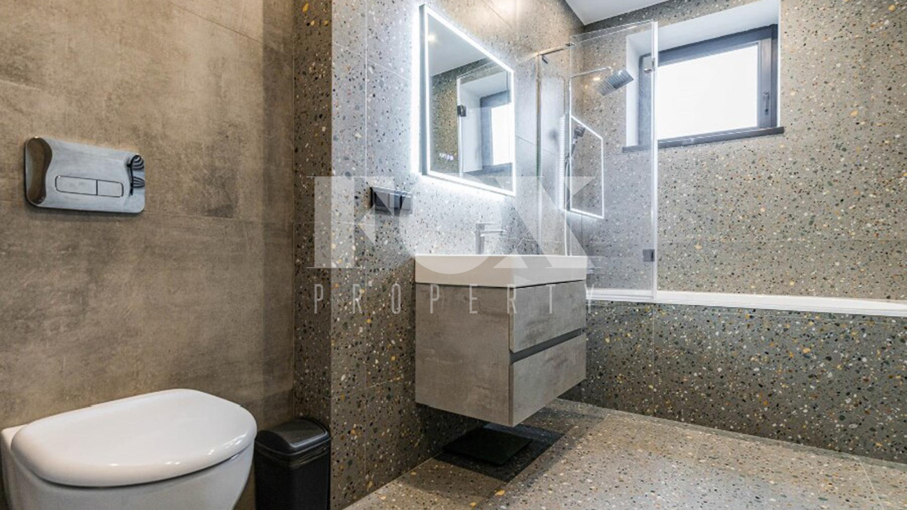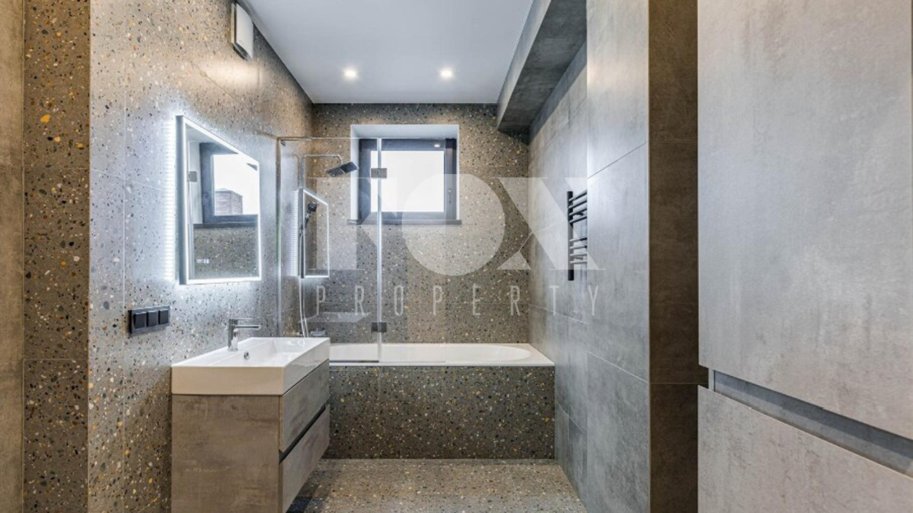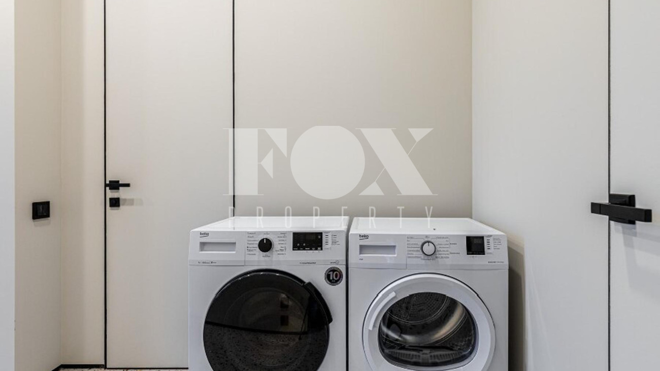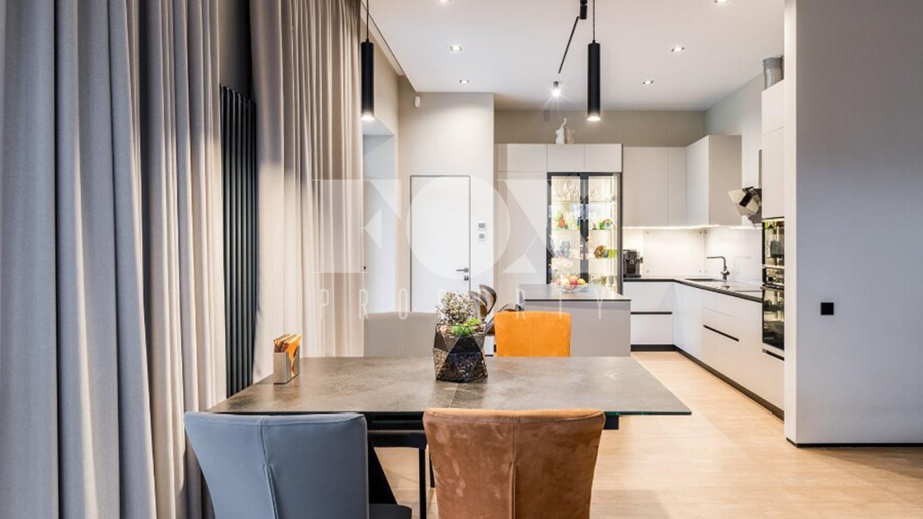 Дом построен из энергоэффективных керамоблоков Porotherm, облицован фиброцементными панелями Nichiha и KMEW, перекрытия — железобетон. Выполнен с использованием премиальных материалов и инженерных систем: магистральный газ, электричество 30 кВт, автономная вода, ЛОС большой мощности, видеонаблюдение, сигнализация с выездом Росгвардии. Полы с подогревом, вентиляция с рекуперацией, кондиционирование, «умное» управление.