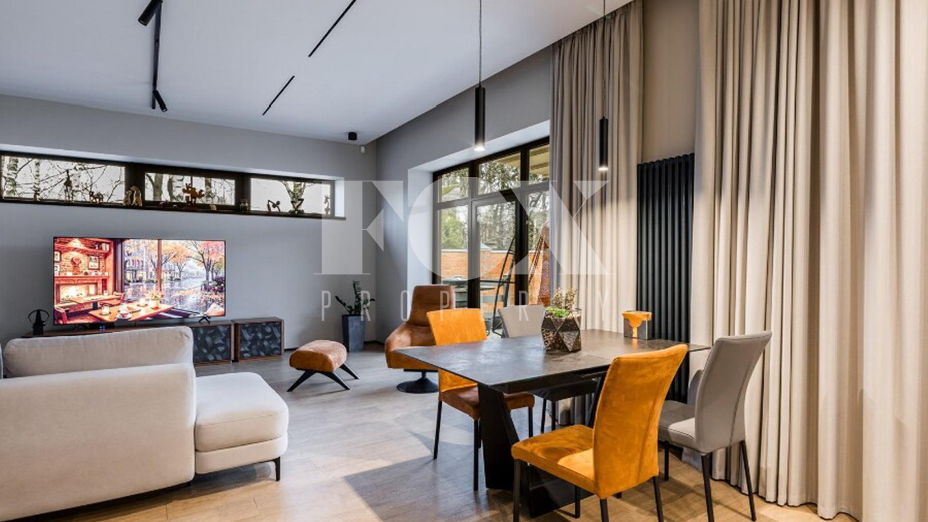 Новый современный дом в Барвихе, готовый к проживанию! Уникальный авторский проект, состоящий из двух строений — основного дома 264 м² и гостевого дома-баня 50 м², расположенных на ровном участке 10 соток в деревне Рождественно.