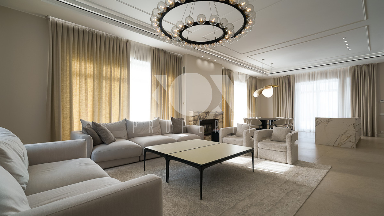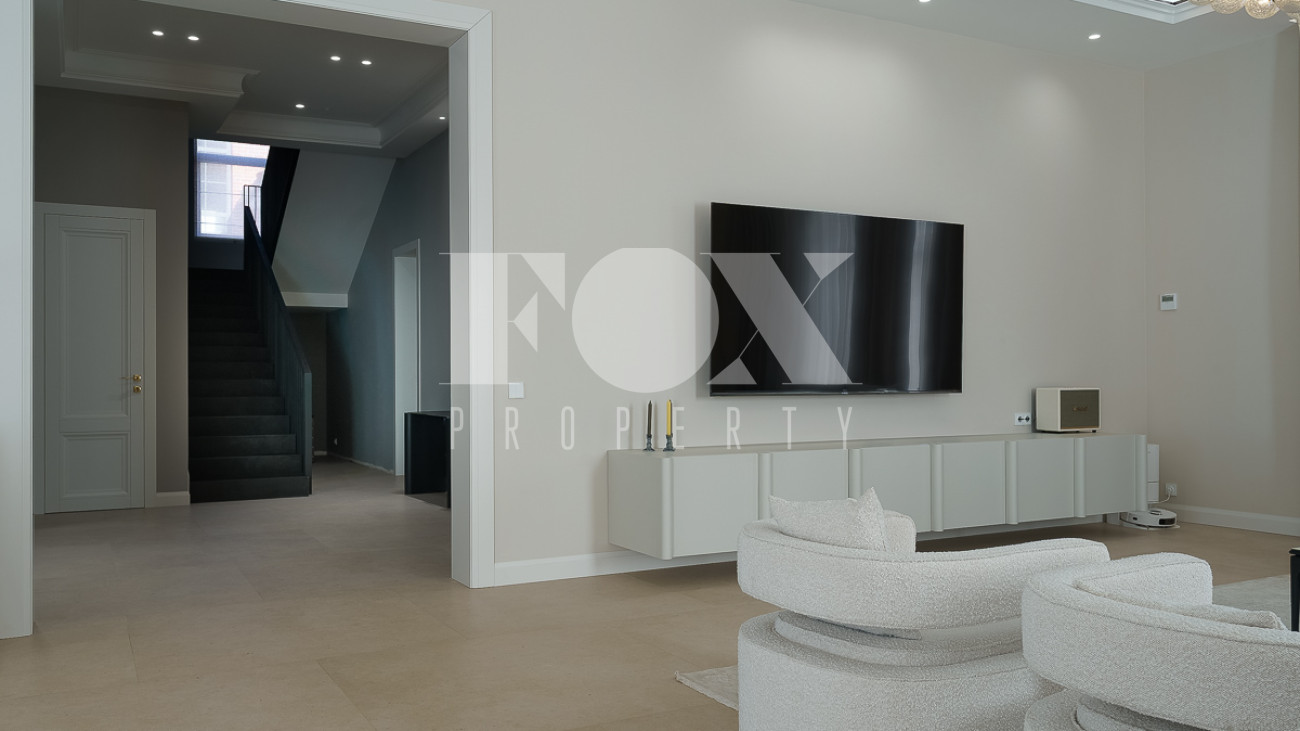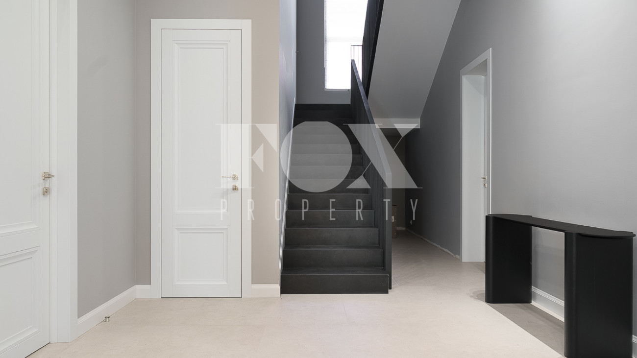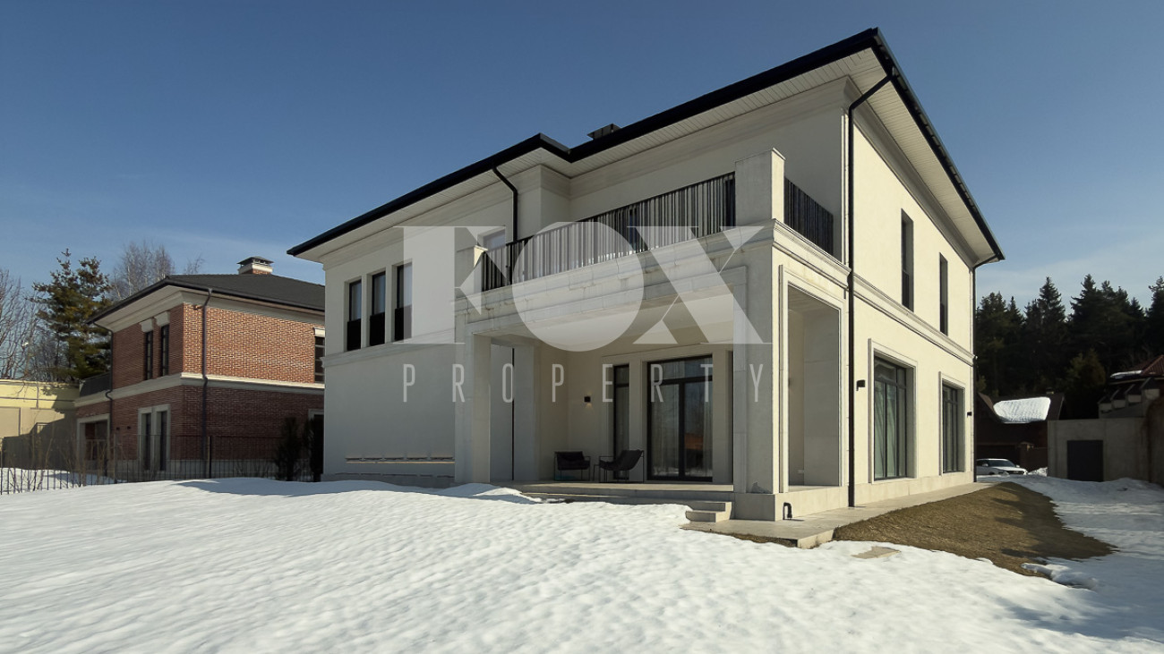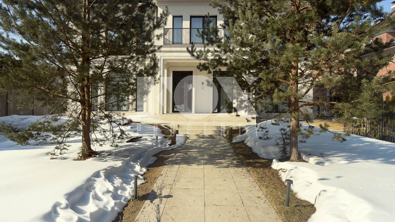 В доме предусмотрены: 4 спальни, 3 из которых со своими санузлами и гардеробными, кабинет, который так же можно переоборудовать в спальню, сауна, постирочная, блок для персонала с отдельным входом, гостиная, кухня, столовая, терраса. В собственности участок 12 соток, по факту 22 сотки. Поселок находится на Рублево-Успенском шоссе в 6 километрах от МКАД, рядом есть вся необходимая инфраструктура: школа, детский сад, фитнес центр, рестораны, кафе, магазины и парки.