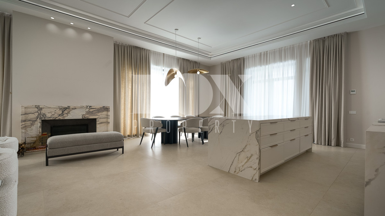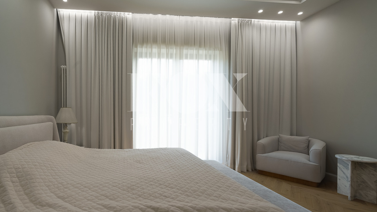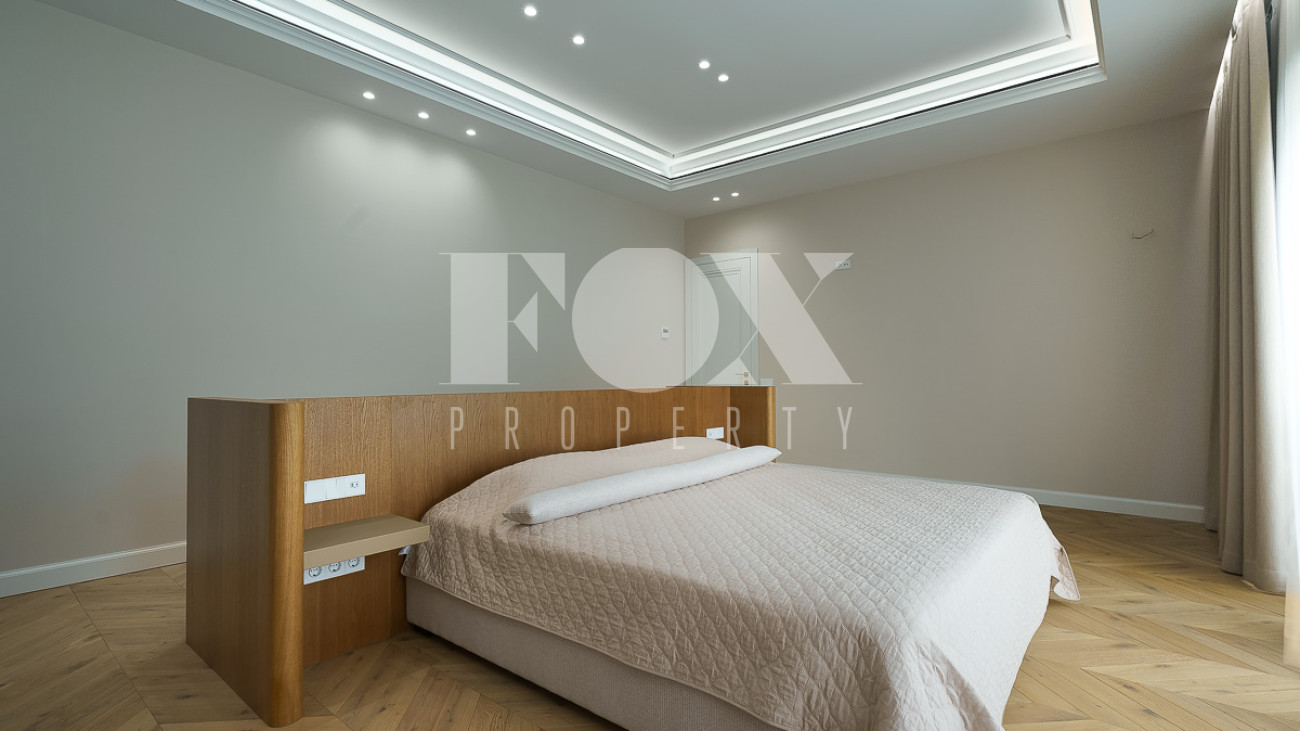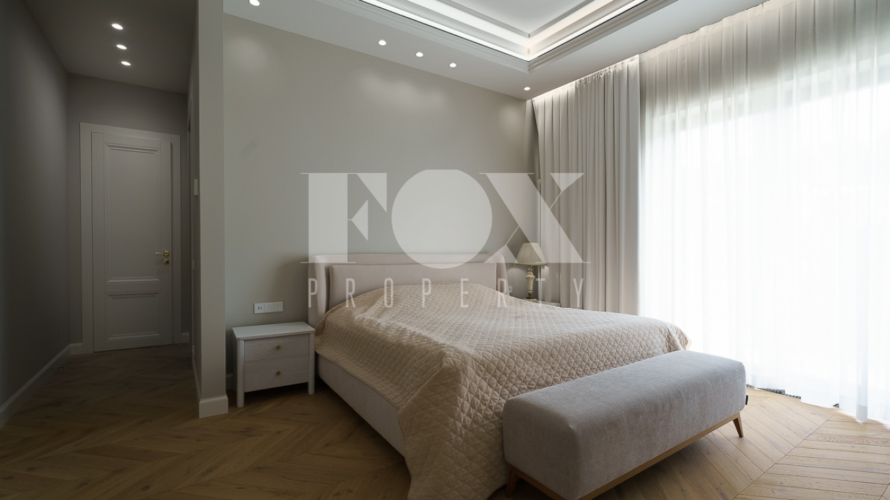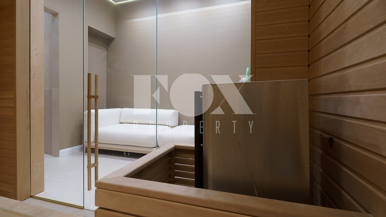 В доме предусмотрены: 4 спальни, 3 из которых со своими санузлами и гардеробными, кабинет, который так же можно переоборудовать в спальню, сауна, постирочная, блок для персонала с отдельным входом, гостиная, кухня, столовая, терраса. В собственности участок 12 соток, по факту 22 сотки. Поселок находится на Рублево-Успенском шоссе в 6 километрах от МКАД, рядом есть вся необходимая инфраструктура: школа, детский сад, фитнес центр, рестораны, кафе, магазины и парки.