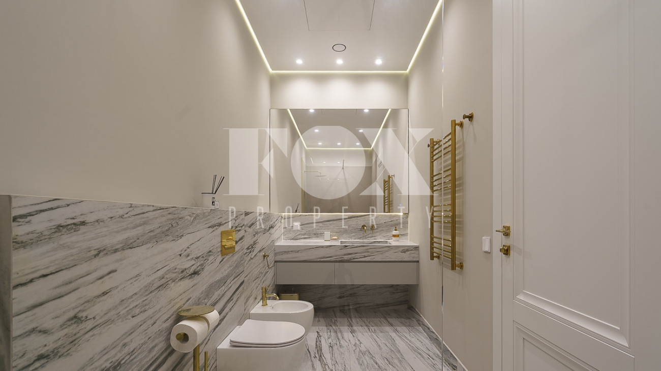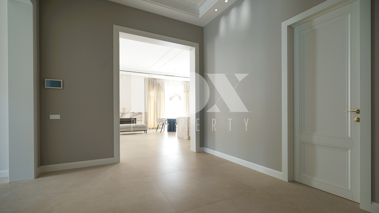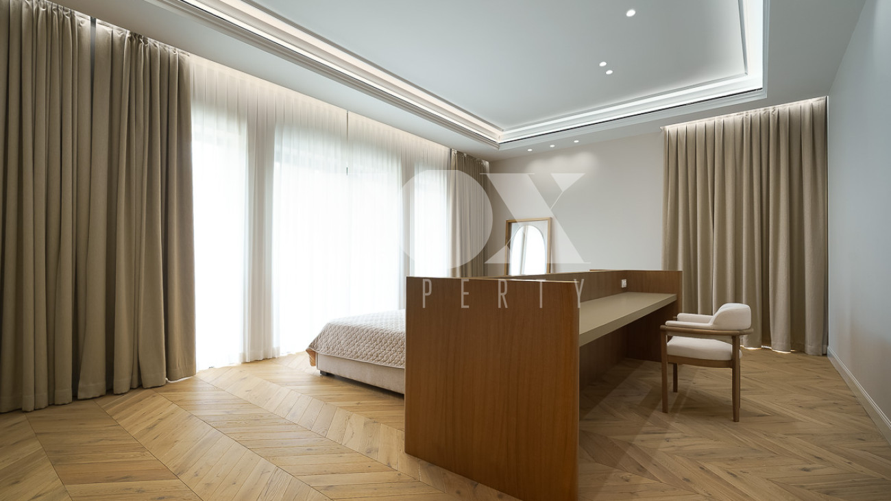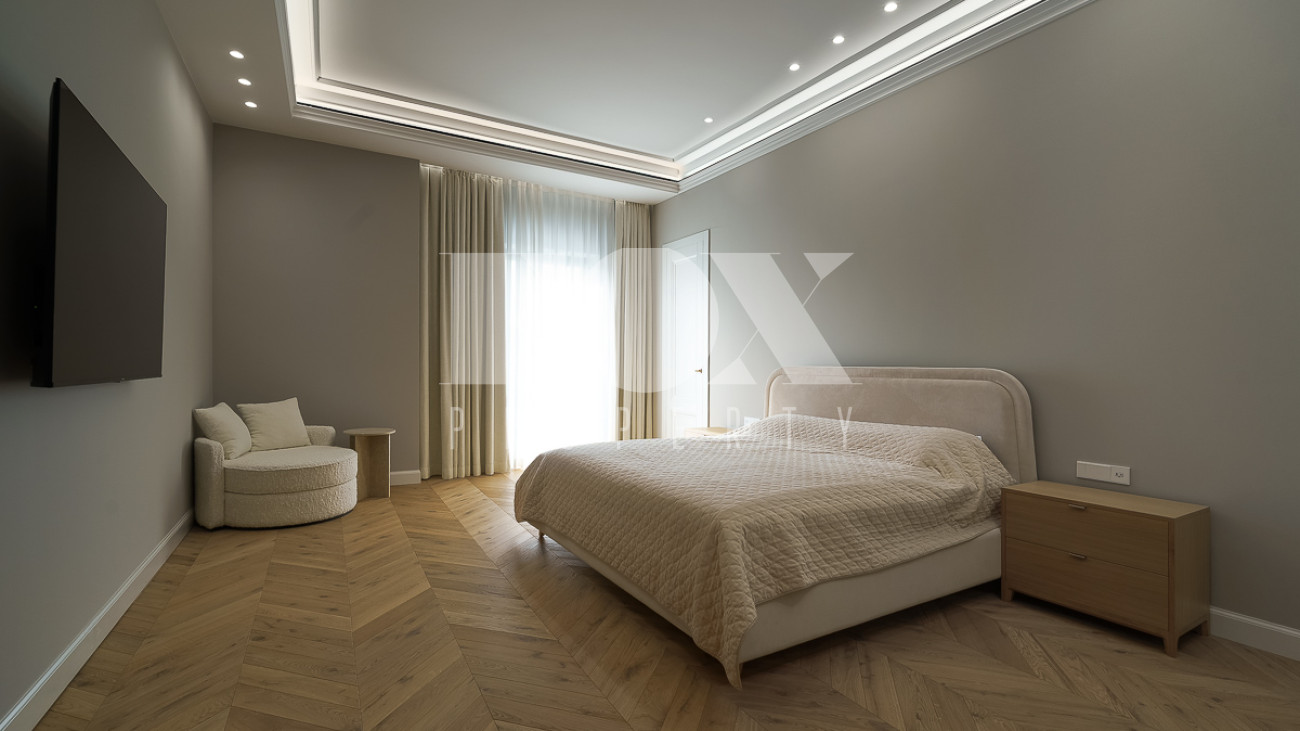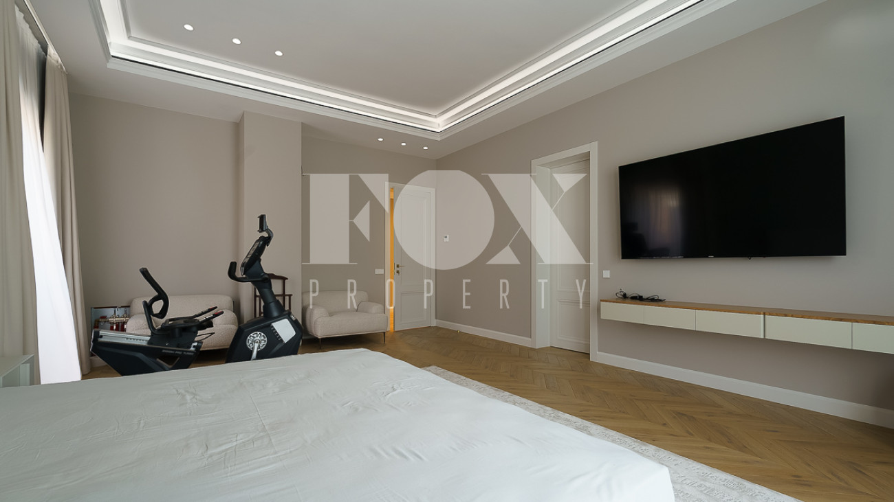 В доме предусмотрены: 4 спальни, 3 из которых со своими санузлами и гардеробными, кабинет, который так же можно переоборудовать в спальню, сауна, постирочная, блок для персонала с отдельным входом, гостиная, кухня, столовая, терраса. В собственности участок 12 соток, по факту 22 сотки. Поселок находится на Рублево-Успенском шоссе в 6 километрах от МКАД, рядом есть вся необходимая инфраструктура: школа, детский сад, фитнес центр, рестораны, кафе, магазины и парки.