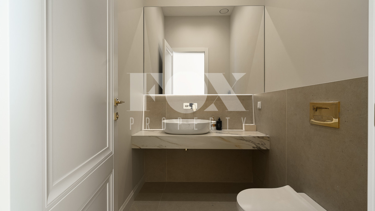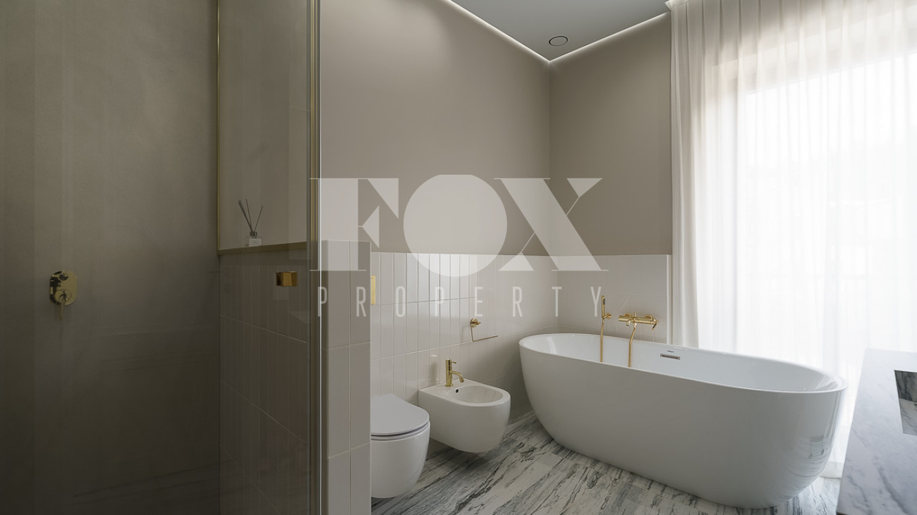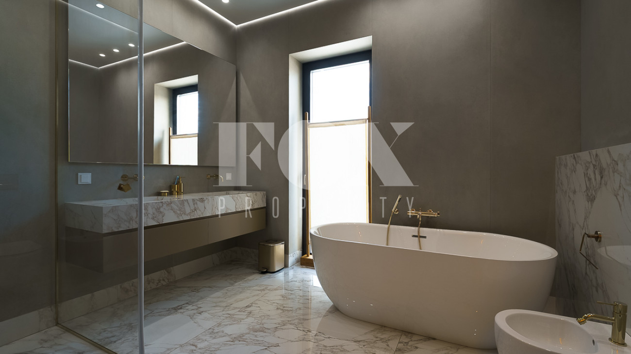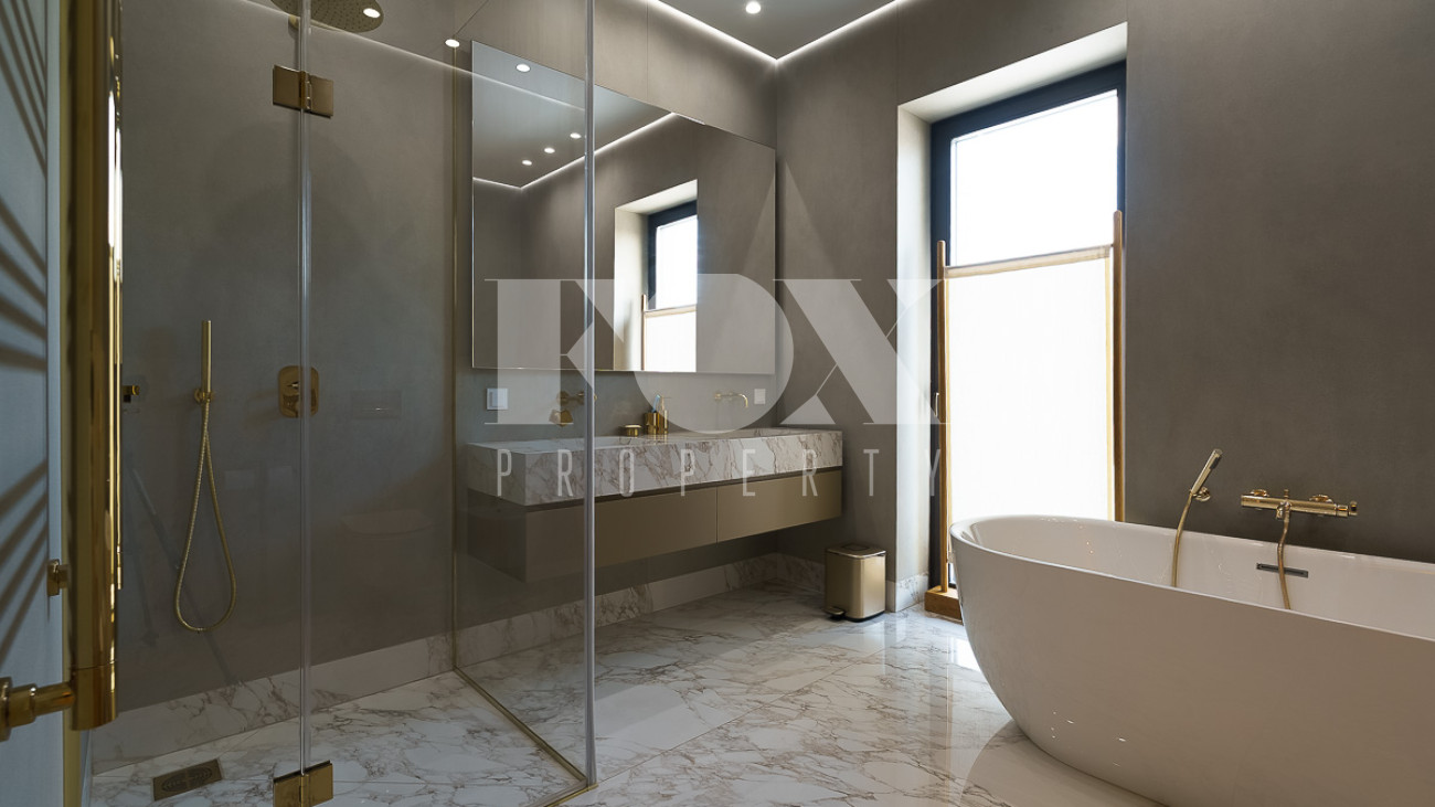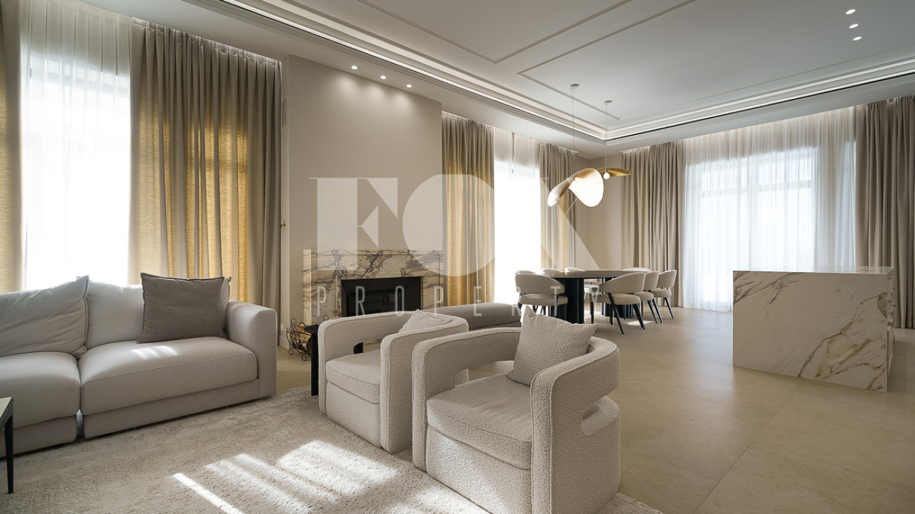 В доме предусмотрены: 4 спальни, 3 из которых со своими санузлами и гардеробными, кабинет, который так же можно переоборудовать в спальню, сауна, постирочная, блок для персонала с отдельным входом, гостиная, кухня, столовая, терраса. В собственности участок 12 соток, по факту 22 сотки. Поселок находится на Рублево-Успенском шоссе в 6 километрах от МКАД, рядом есть вся необходимая инфраструктура: школа, детский сад, фитнес центр, рестораны, кафе, магазины и парки.