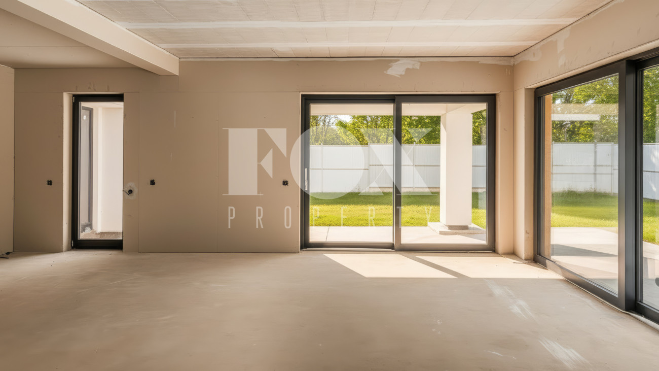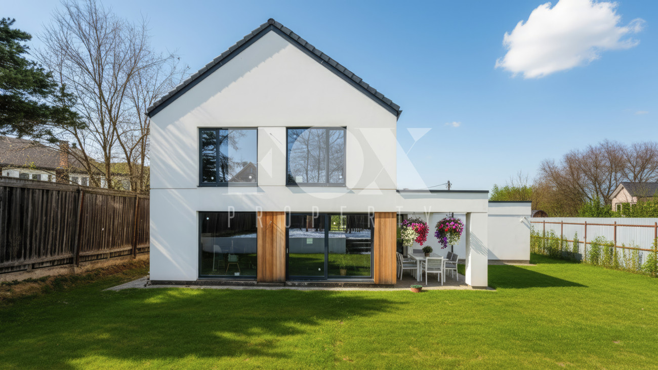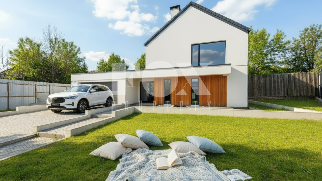 Современный дом площадью 350 кв.м на участке 10 соток. Предлагается с отделкой с white box, в т.ч. электрика, отопление, вентиляция с рекуперацией, канализация, водопровод. Все разведено согласно проекту, штукатурка всех стен и перегородок, ландшафтный дизайн.