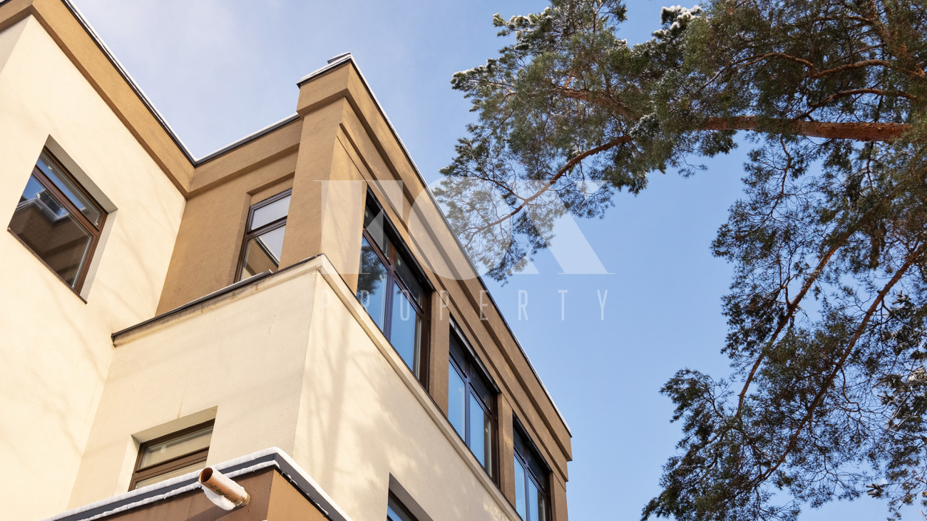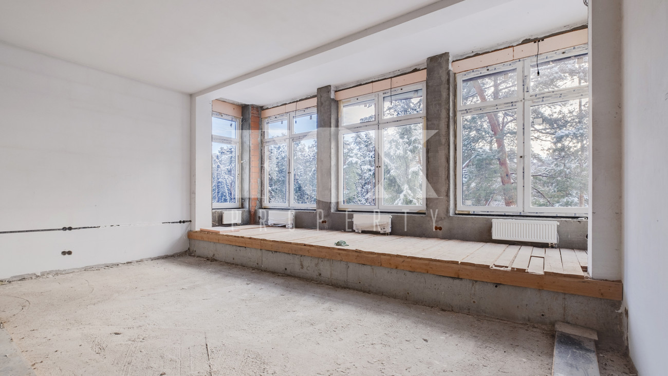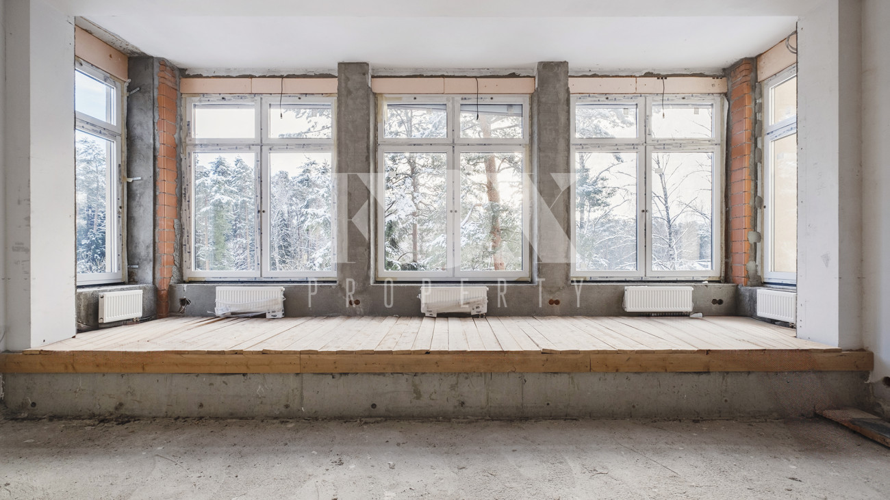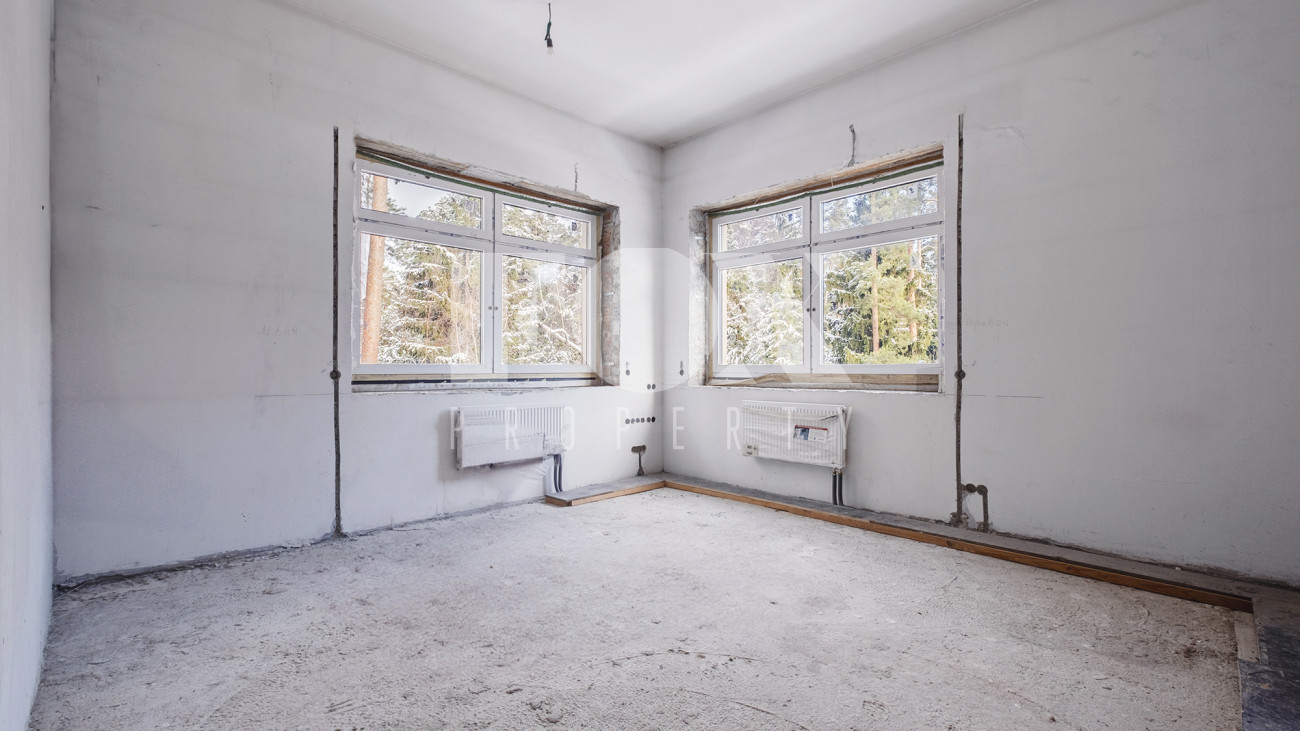 Предлагается дом площадью 600 м2 плюс эксплуатируемая кровля 90 м2. Расположение на краю участка позволяет не мешать дальнейшей застройке участка. В случае строительства другого основного дома предусмотрена возможность снижения этажности дома до уровня двух или даже одного этажа для вписывания в общий архитектурный ансамбль будущей усадьбы.