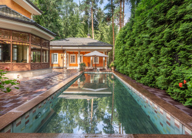 Элегантная резиденция 980 кв.м на участке 47 соток в элитном поселке Сосновый бор - одно из редких и ценных предложений на Рублево- Успенском направлении всего 24 км от Москвы.