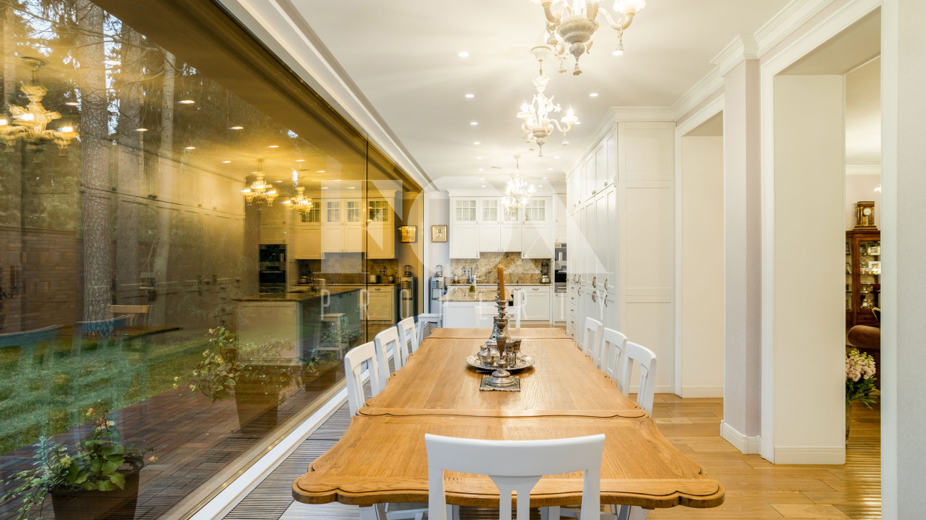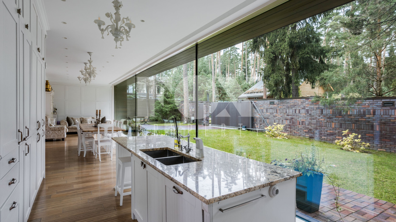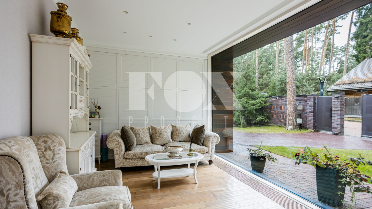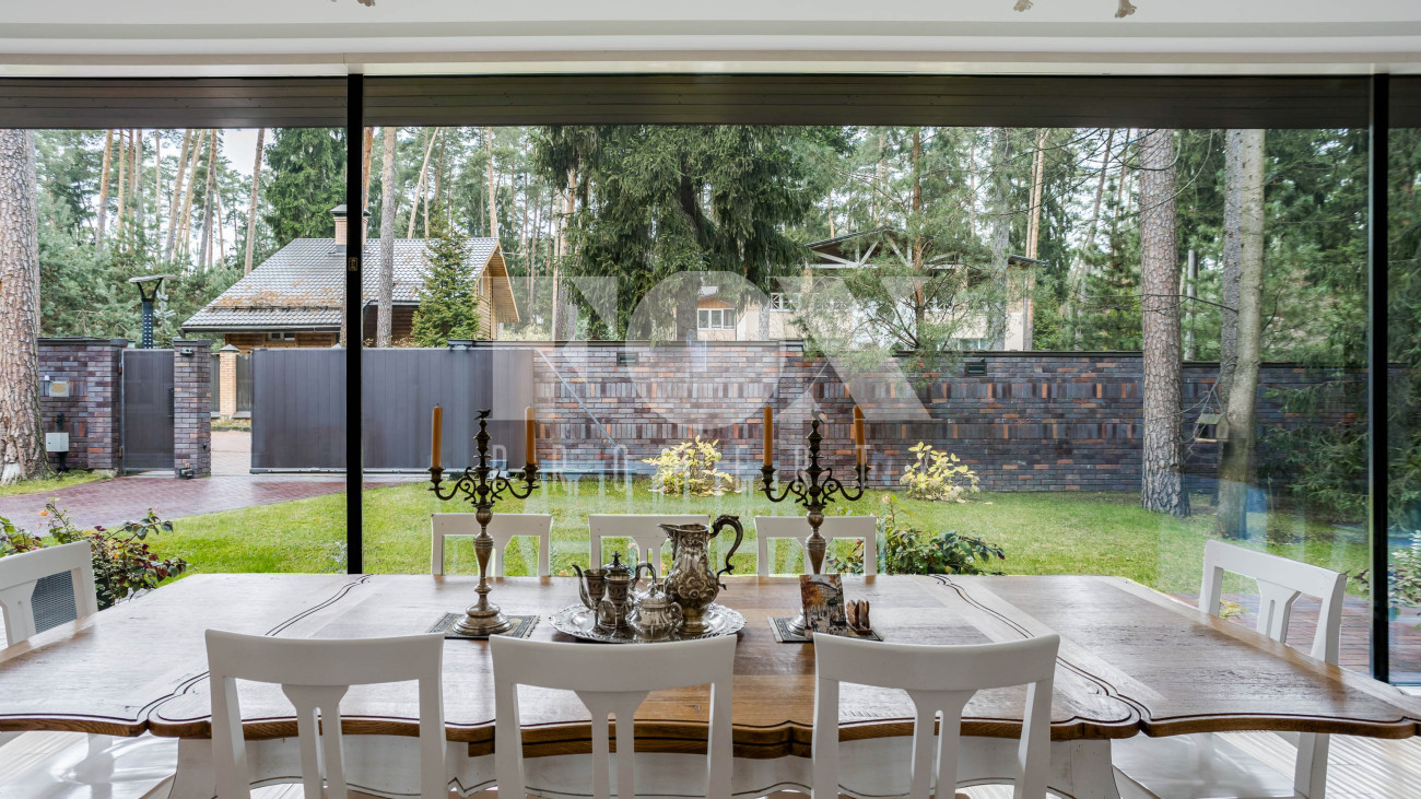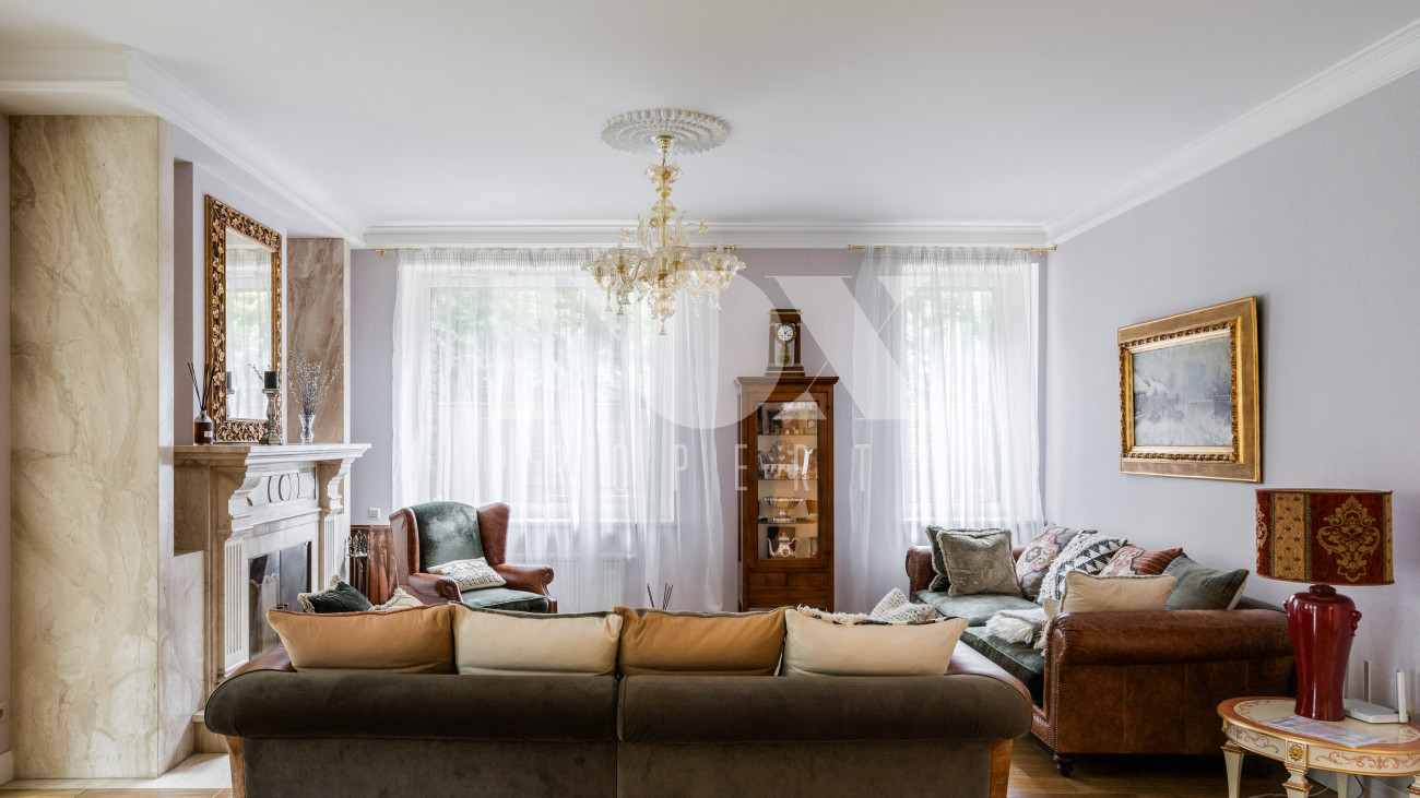 Дом площадью 550 м², расположен на участке 15 соток. Просторные комнаты, качественная отделка, большая гостиная для проведения времени с семьей и друзьями. В доме 5 спален, блок для персонала в цоколе, кабинет и большая кухня с панорамными окнами и выходом на летнюю террасу, где оборудована зона барбекю. Идеальное место для семейных ужинов, дружеских посиделок и праздников на открытом воздухе.