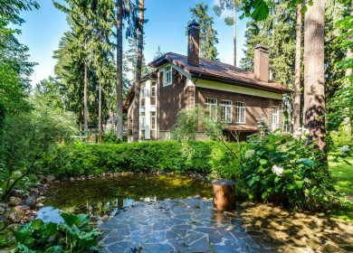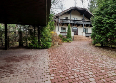 На красивом Лесном участке 61 сот. помимо основного дома расположен гараж с Квартирой для Персонала на 2 этаже, крытая беседка с зоной BBQ, корт.