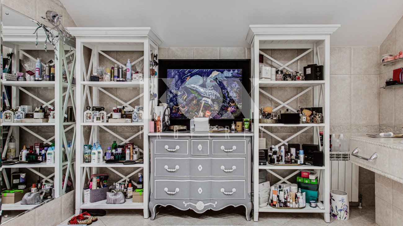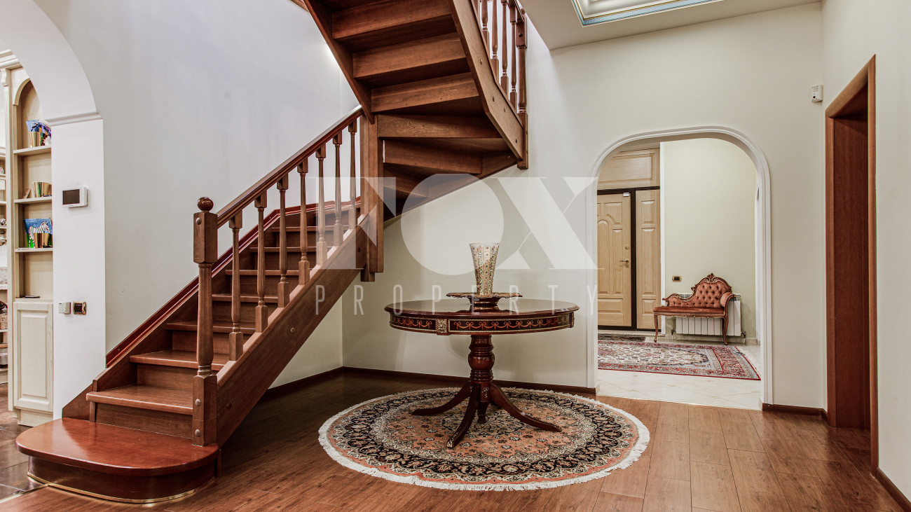 Помимо удачного расположения, дом привлекает внимание тёплым интерьером и качественными строительными и отделочными материалами. Дом построен из кирпича, способствующего созданию идеальной микроклимата внутри помещений. Интерьер подчёркнут дорогой отделкой, выполненной из натуральных и экологически чистых материалов, которые придают дому особый шарм и уют. Просторный первый этаж объединяет открытую гостиную, интегрированную с кухней с выходом на красивую террасу и участок, создавая идеальное пространство для семейных ужинов и праздников. Также на первом этаже предусмотрена отдельная спальня, что особенно актуально для размещения пожилого поколения или детской комнаты.
