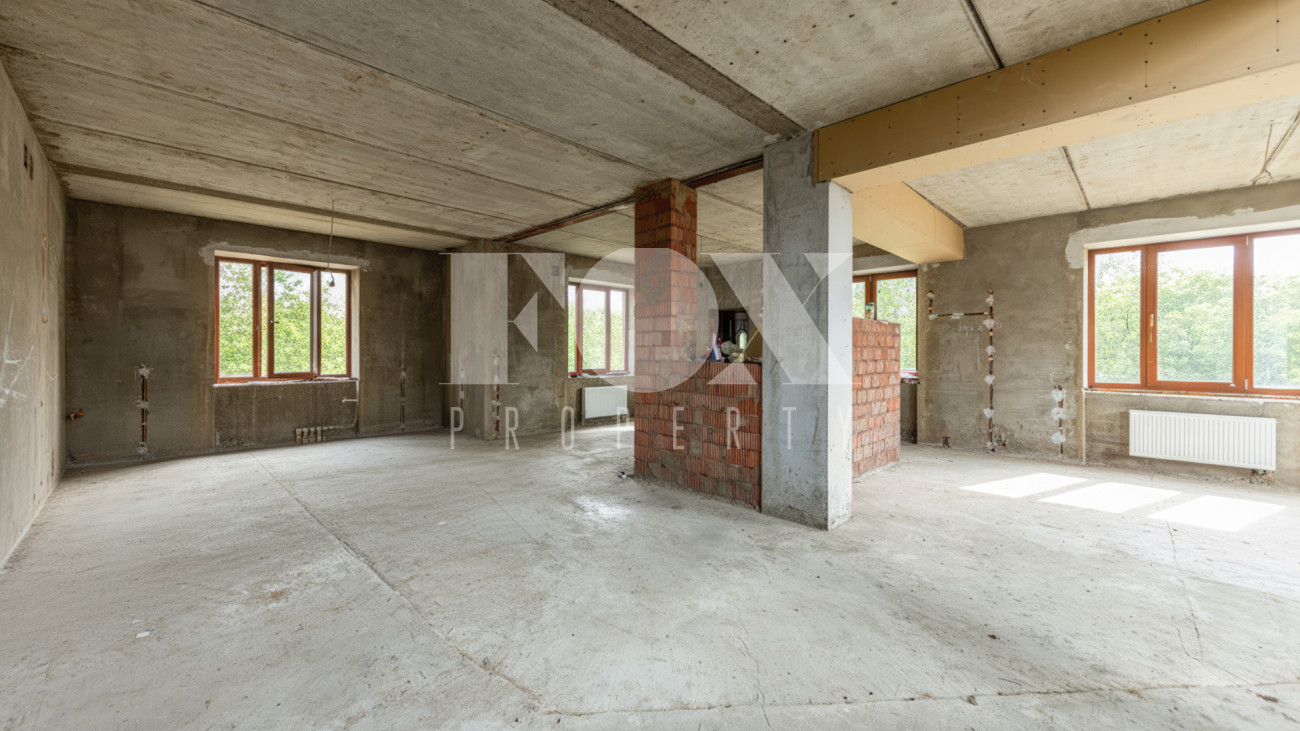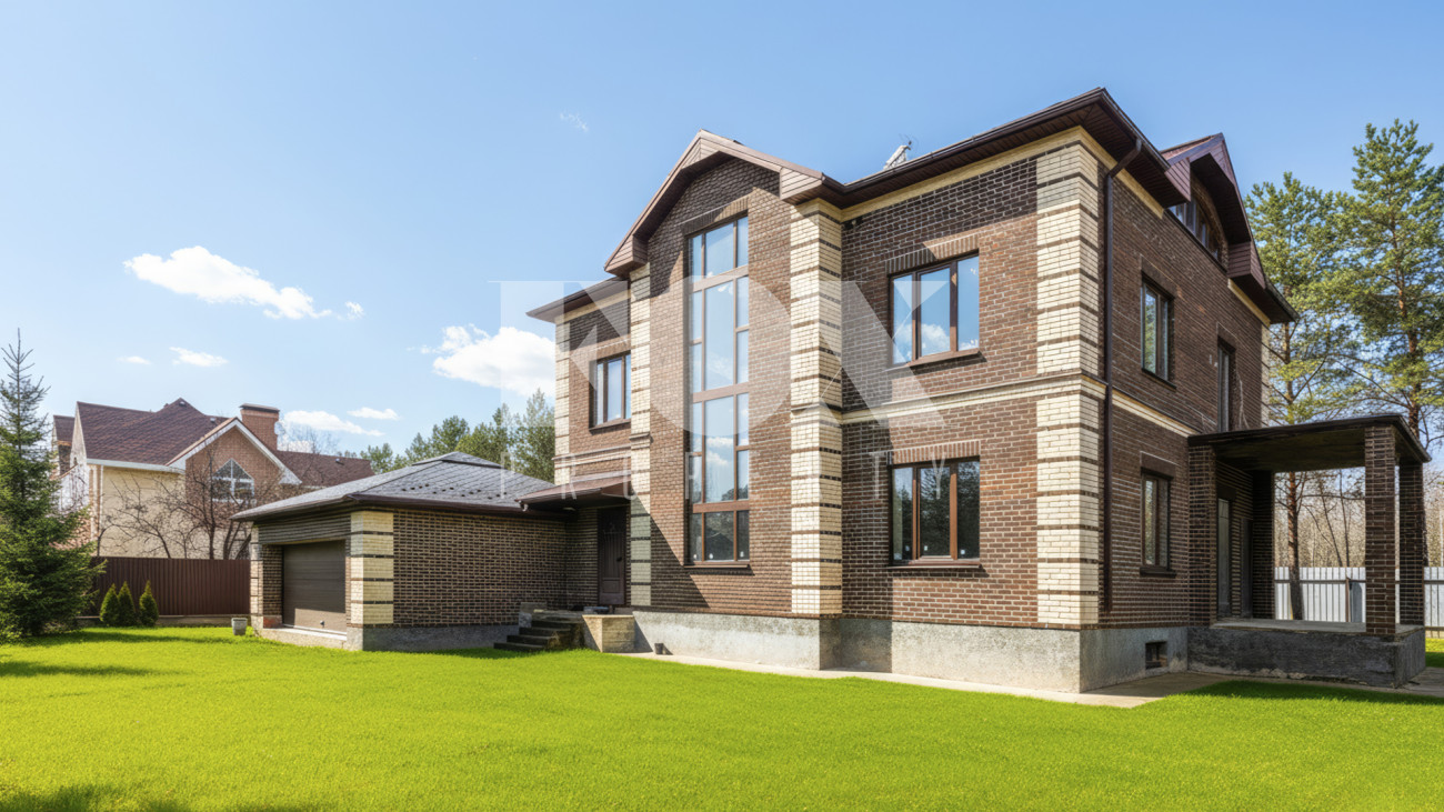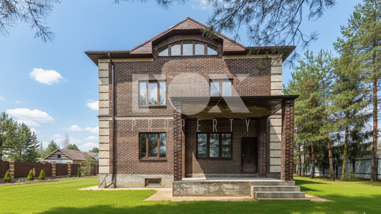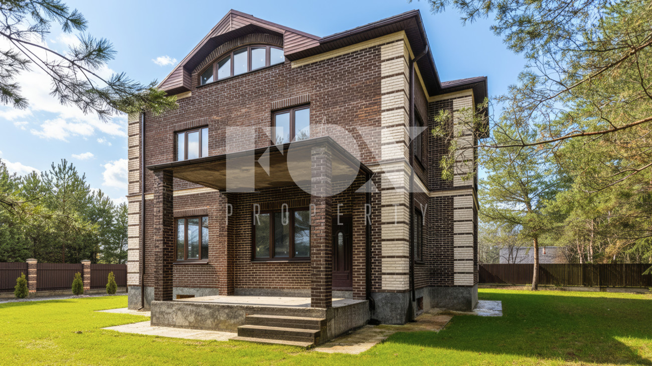 Загородный дом площадью 500 м² расположен на полевом участке 16,5 соток. Фасад здания облицован коричневым клинкерным кирпичом. В коттедже с отделкой white box осталось лишь выбрать финишные покрытия и выполнить меблировку.