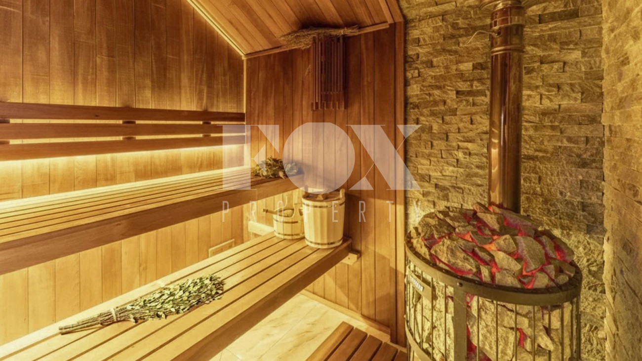 Планировка включает просторную гостиную с дровяным камином, кухню-столовую с выходом в сад, три уютные спальни, вместительные гардеробные и игровую, которую можно переоборудовать под кинозал или бильярдную. Сердцем коттеджа стала спа-зона с бассейном 5х8 метров, хаммамом и комнатой отдыха.