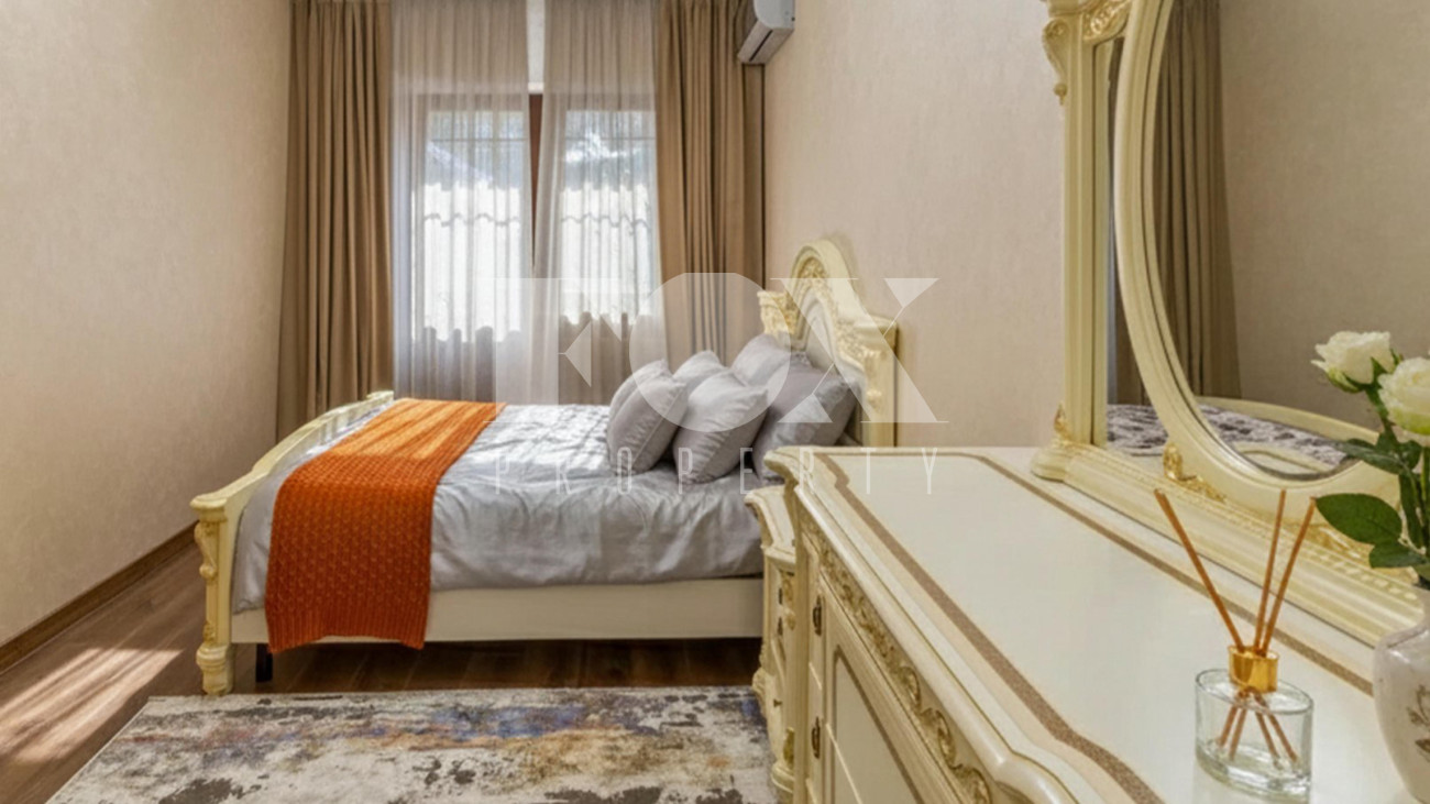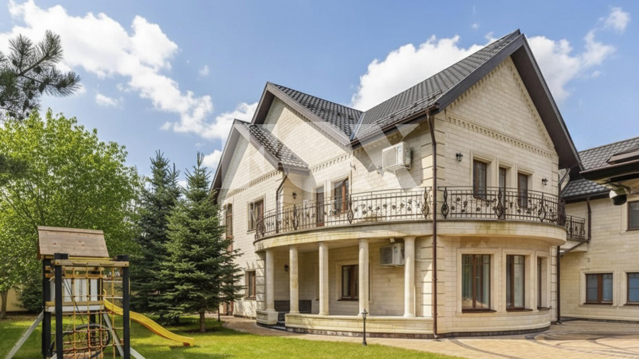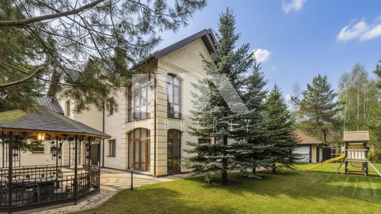 Кроме того, на территории построены баня, застеклённая летняя кухня, уютная беседка для тёплых вечеров в кругу близких и детская площадка. Участок с ухоженным газоном, освещёнными дорожками, пушистыми елями и декоративными кустарниками — это собственный уголок природы, где каждое утро начинается со свежего воздуха и пения птиц.