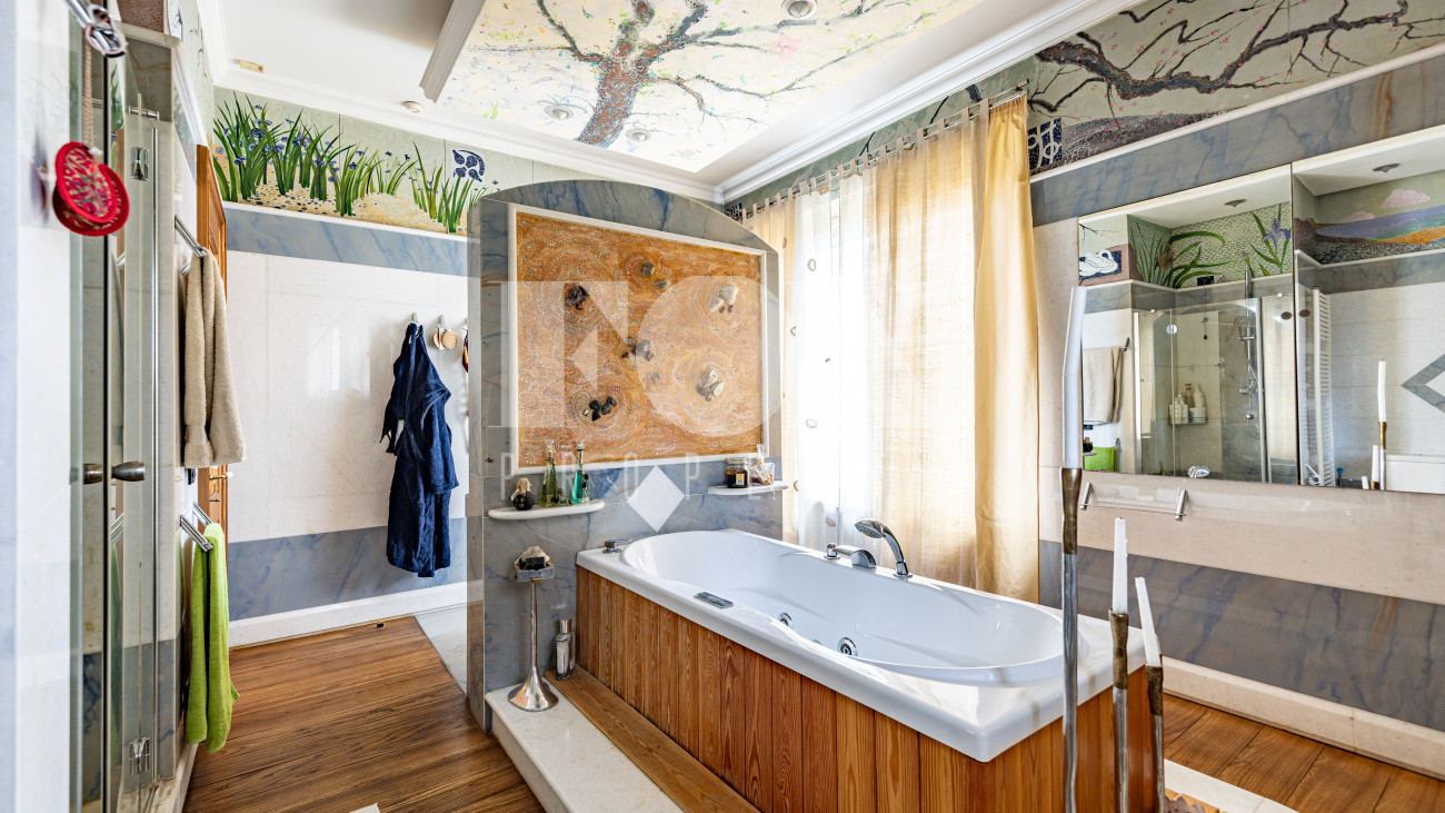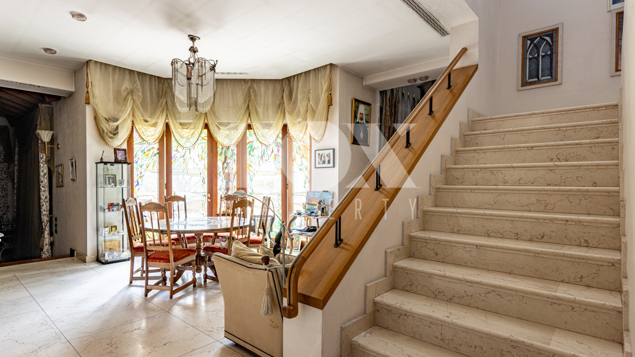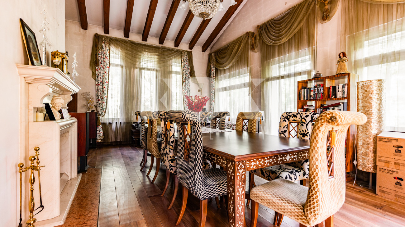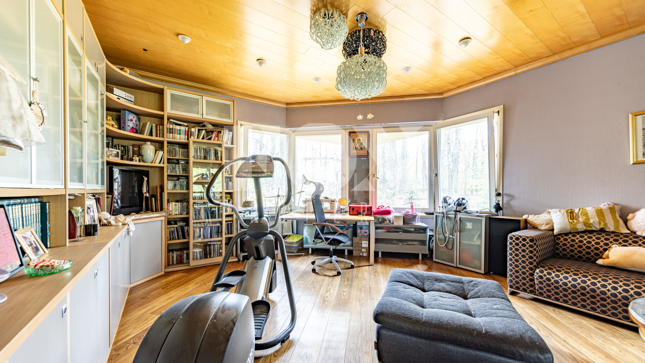 Дом в деревне Жуковка, расположен на большом лесном участке, имеет два выезда на Рублево-Успенское шоссе и на Ильинское шоссе. Дом под охраной, кирпич построен в 2004 году, оборудован системой отопления, контролирующей температуру воздуха во всем доме с датчиками движения. На участке 67 соток много цветов, плодово-ягодных культур, участок вымощен дорожками, построена беседка, оборудована мангальная зона. По периметру участка видеонаблюдение.