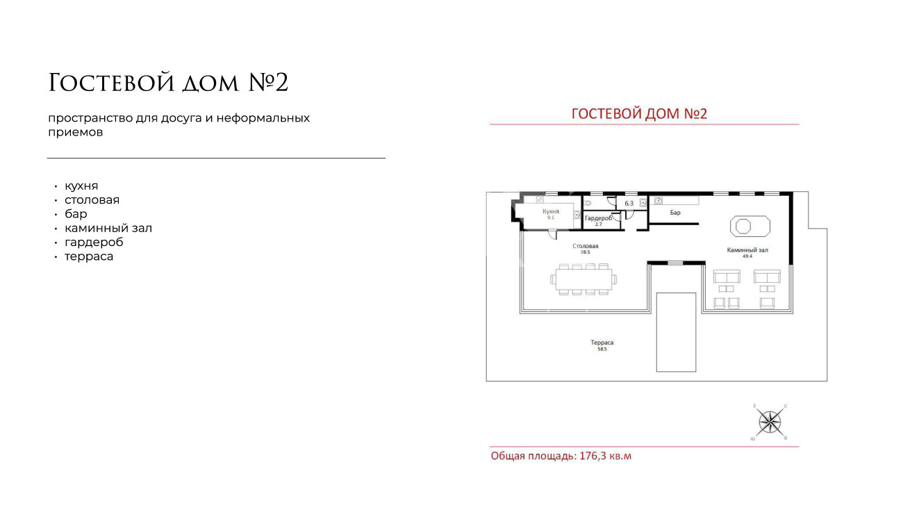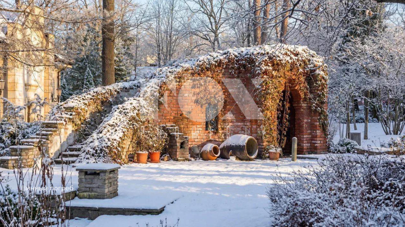 Дополнительные строения образуют завершенную инфраструктуру: павильон для приемов с террасой, винный погреб с дегустационной зоной, дом для персонала, помещение охраны, домик садовника у оранжереи и теплый гараж на 2 м/м создают идеальную среду для жизни, где природа и архитектура существуют в неразрывном единстве.