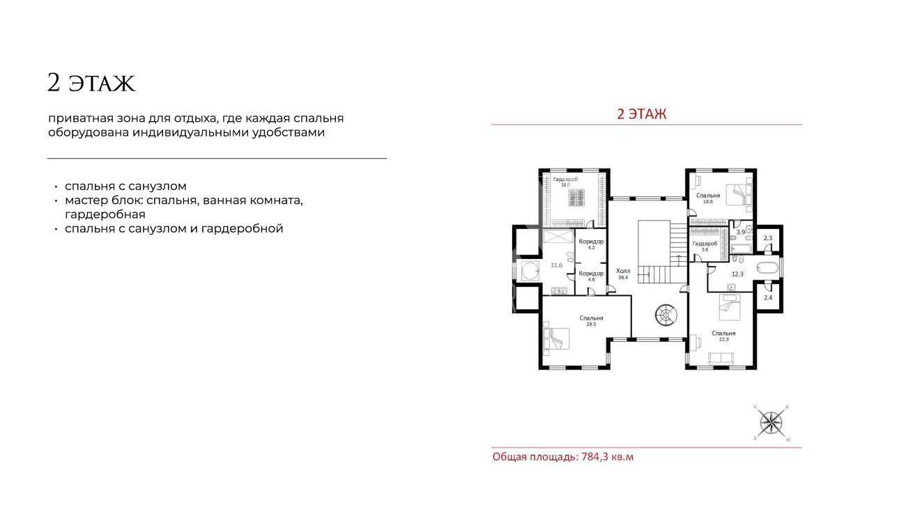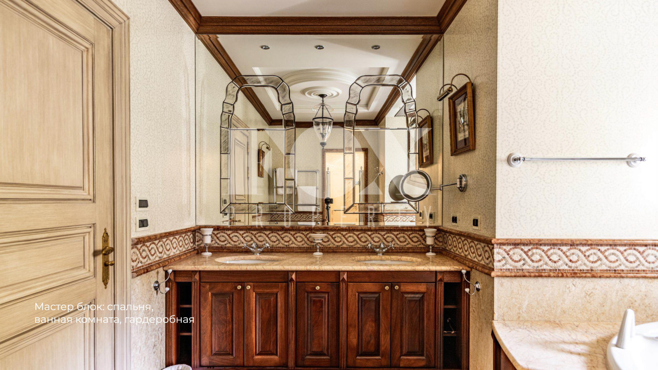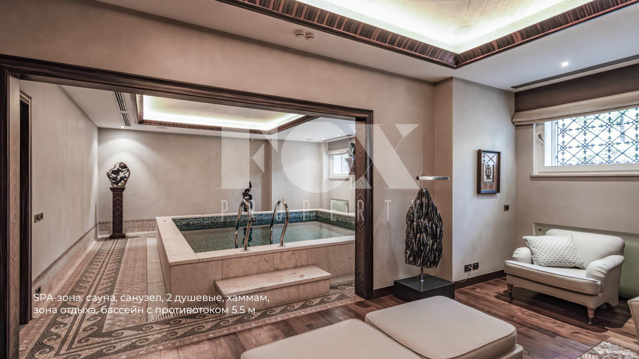 Внутренняя планировка воплощает принципы палладианской симметрии: на первом этаже общественные зоны плавно перетекают друг в друга, создавая единое пространство для жизни и приема гостей. Второй этаж предлагает уединение в трех спальнях с индивидуальными гардеробными и санузлами, а цокольный уровень открывает мир релаксации с бассейном, SPA-комплексом и кинозалом.