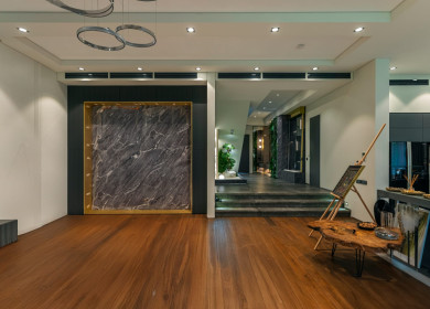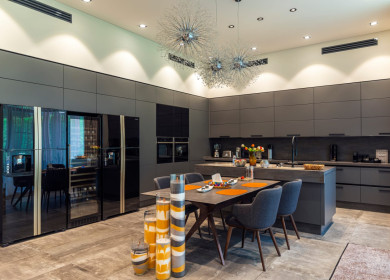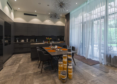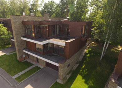 В каждой резиденции предусмотрено от трех до пяти спален со своими санузлами, просторная гостиная с установленным камином и панорамным остеклением, гардеробные комнаты, терраса и патио площадка с отдельным выходом на улицу, собственная котельная, гараж и уличная парковка. В резиденциях площадью от 487,7 кв.м. дополнительно расположены сауна с комнатой для отдыха, кабинет и помещения свободного назначения.