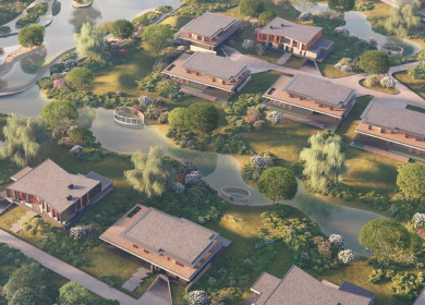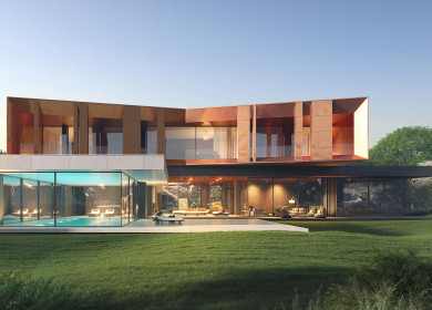 - Третья вилла ― 1554 квадратных метра, видовой холл, собственный спа-комплекс и бассейн, сауна, хамам, свой зимний сад.